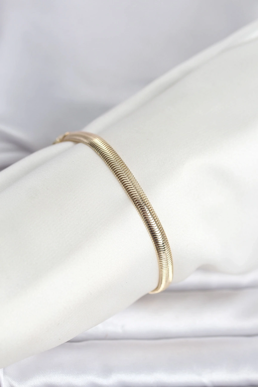 CM 14K Gold Renk Yassı Zincir Yılan Model Kadın Bileklik