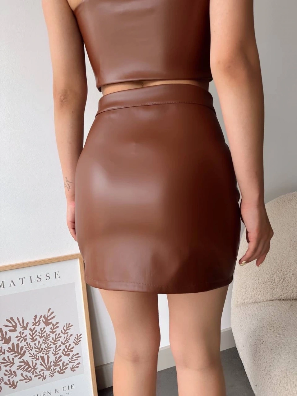 Dantelli fermuarlı deri etek kahve --Şıklık ve tarzı bir arada sunan Dantelli Fermuarlı Deri Etek, gardırobunuzun vazgeçilmez parçalarından biri olmaya aday! Yüksek kaliteli deri malzeme sayesinde uzun ömürlü kullanım ianı sunar. Dantel detaylar eteğe feminen bir hava katarak göz alıcı bir görünüm sunar. Fermuar detayı eteğe modern ve şık bir dokunuş kazandırır. İster günlük ister özel günlerde rahatlıkla kullanabileceğiniz çok yönlü bir parçadır. Kahve rengi ile kombinlemesi kolaydır, farklı üst kıyafetler ile şık ve trendy görünümler oluşturabilirsiniz. Şıklığı ve rahatlığı bir arada arayan kadınların favorisi olmaya aday Dantelli Fermuarlı Deri Etek'i hemen sepetinize ekleyin!