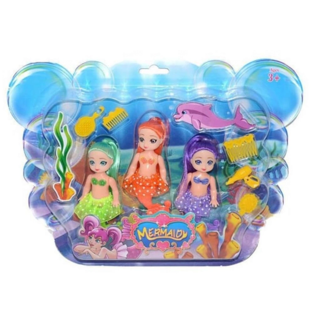 2'li Deniz Kızı Bebek Seti - Hareketli Eklemler ve Aksesuarlı -Sarı & Mor - 1 ADET