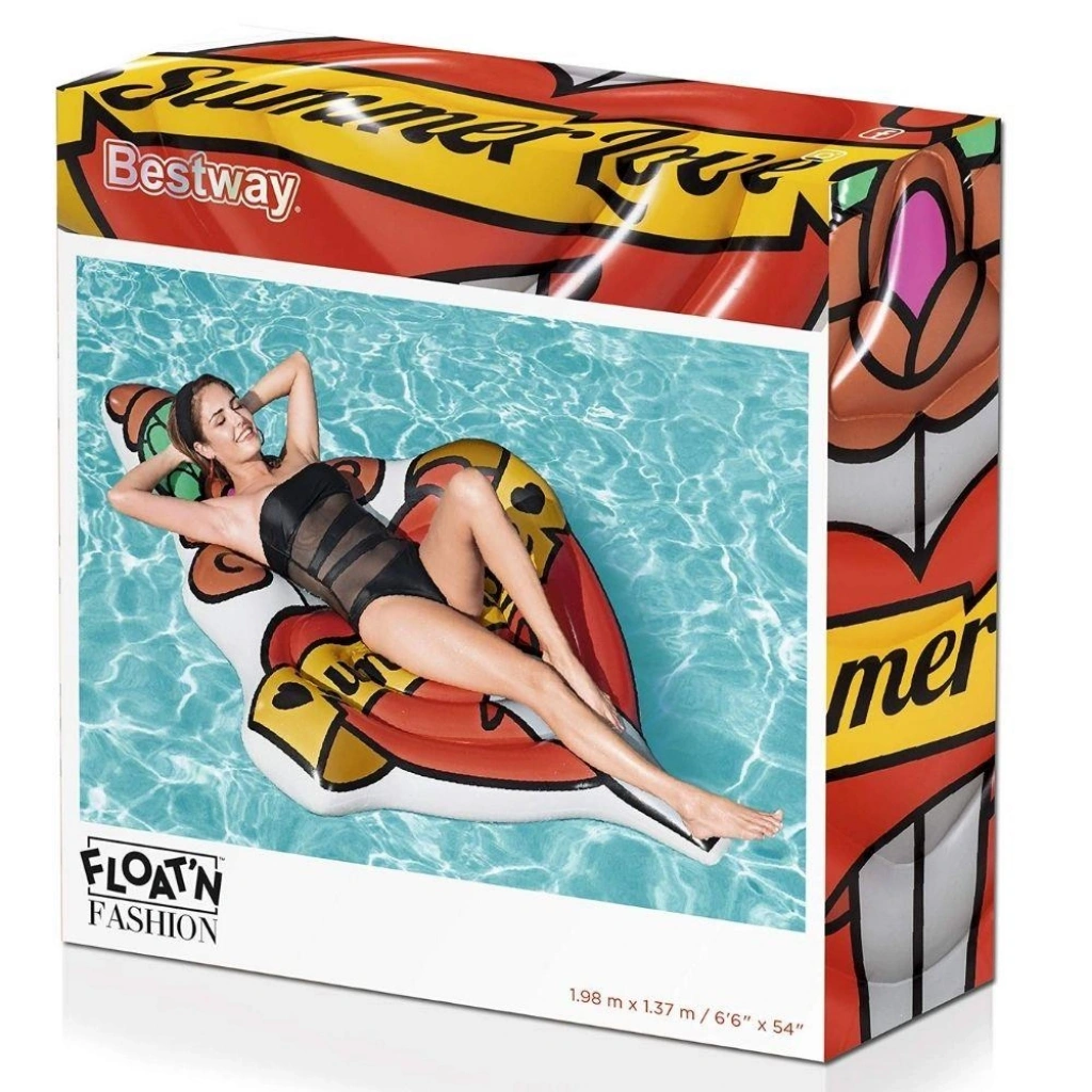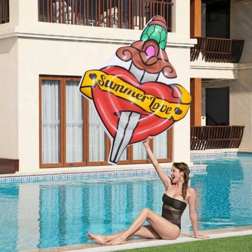 Deniz Yatağı Yaz Aşkı Dövmeli Yatak 198 x 137 cm ebatındadır.2 adet şişirme valfi bulunmaktadır.90 kg taşıma kapasitesi bulunmaktadır.