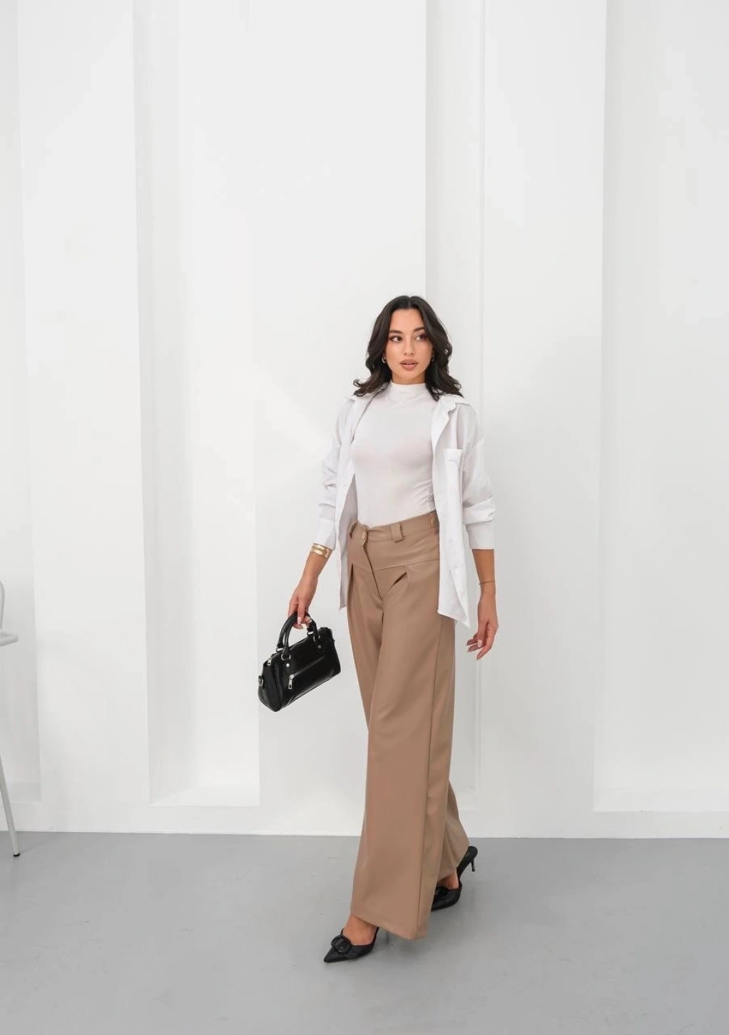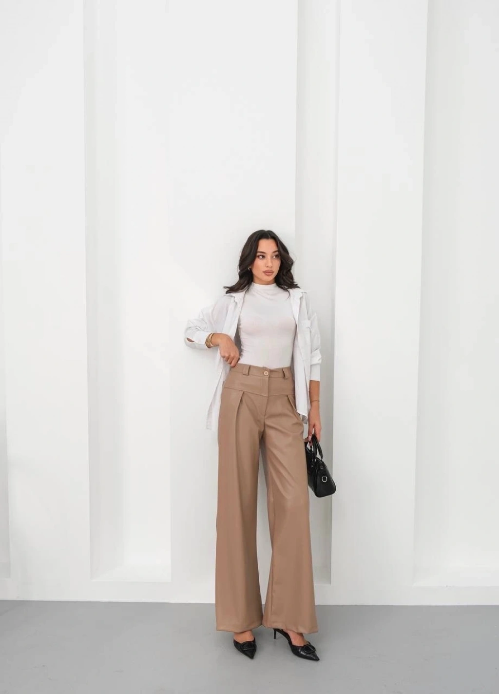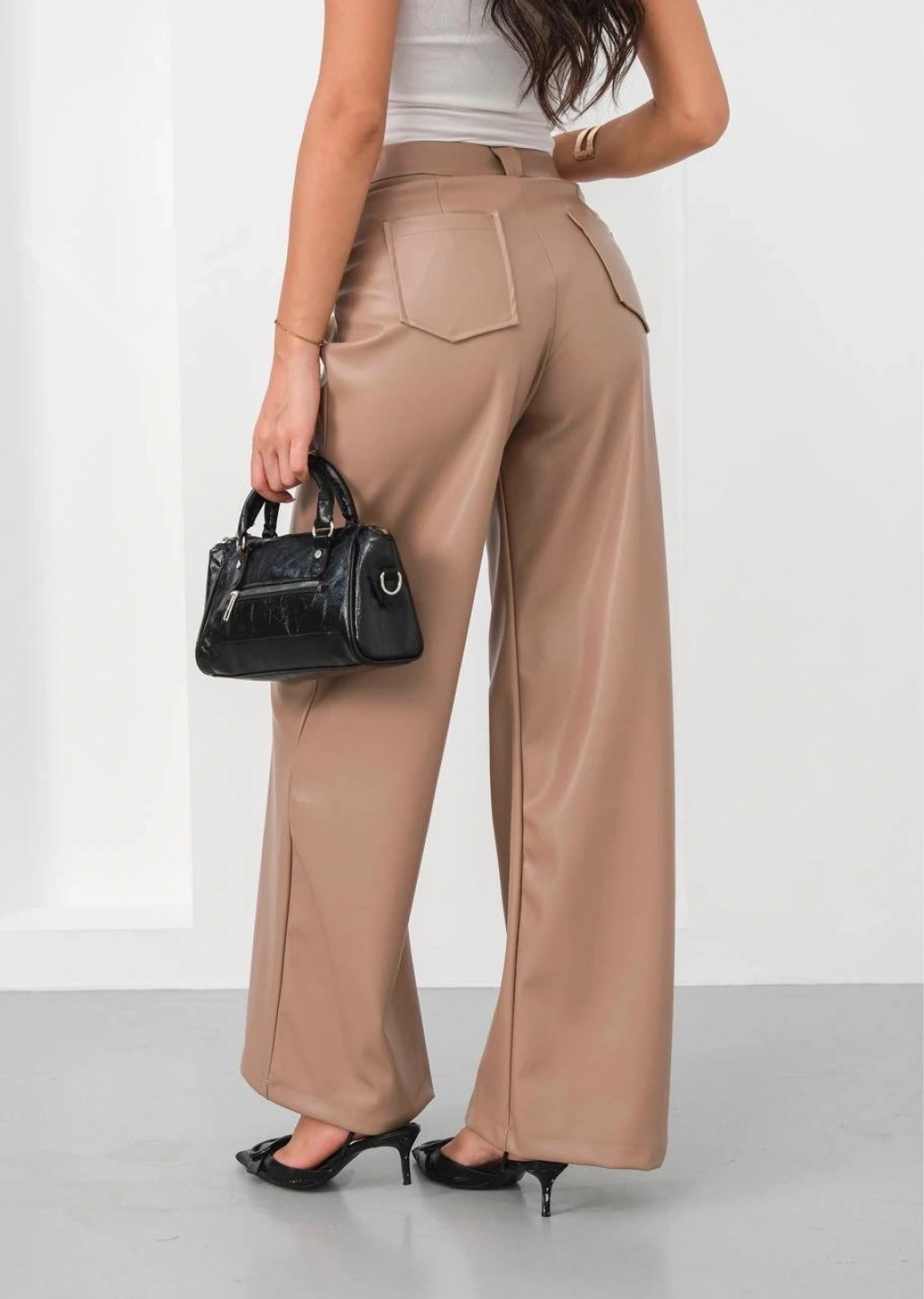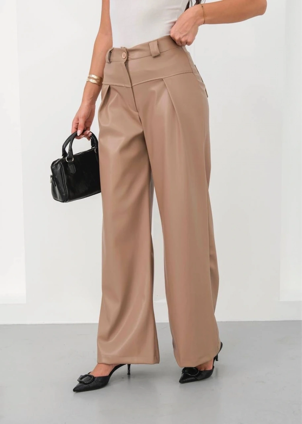 Deri geniş paça beli lastikli pantolon bej h263644--Deri geniş paça beli lastikli pantolon bej h263644, hem şık hem de rahat bir seçenektir. İşte bu pantolonun öne çıkan özellikleri: Yüksek bel tasarımı sayesinde vücudu saran ve belinizi ön plana çıkaran bir görünüm sunar. Lastikli bel detayı ile hareket özgürlüğü sağlar ve konforlu bir kullanım sunar. Bej rengiyle kombin yapılabilme kolaylığı sunar, günlük kullanıma uygun bir parçadır. Deri görünümlü kumaşıyla şık bir görünüm sağlar, her türlü üst giysiyle kolayca kombinlenebilir. Geniş paça kesimiyle modern bir tarz tır, trendleri takip eden kadınların tercihidir. Yüksek kaliteli malzemeden üretilmiştir, uzun ömürlü ve dalıdır. Günlük kullanıma uygun olmasının yanı sıra özel davetlerde de tercih edilebilir.