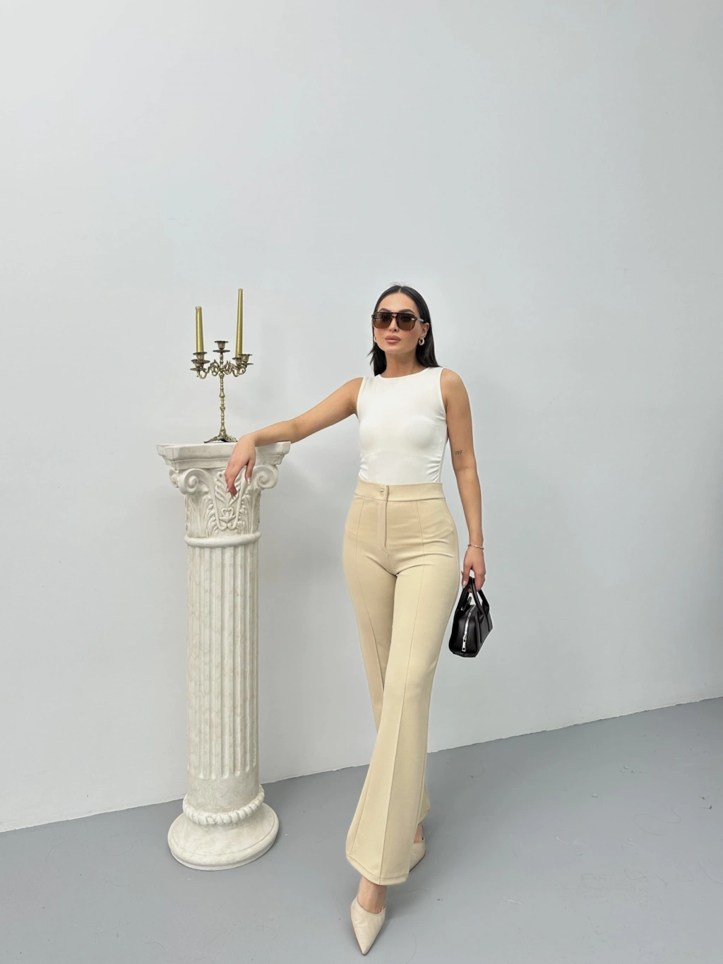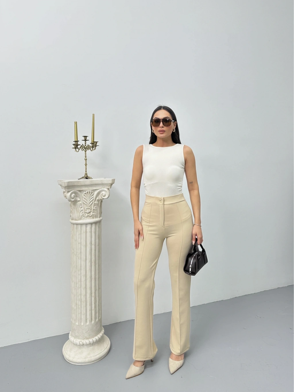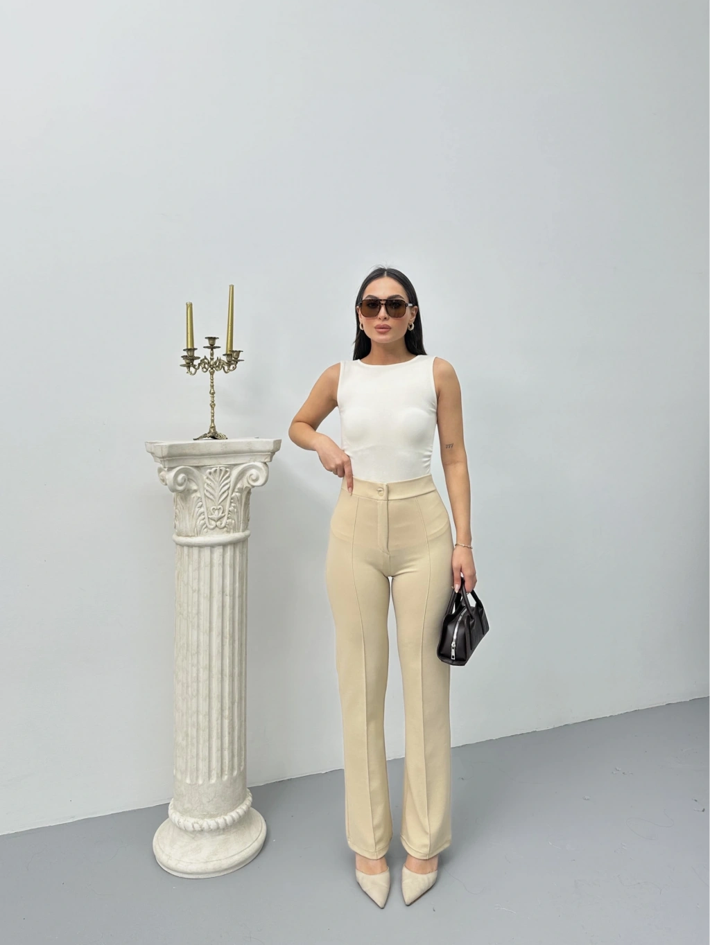 Düğmeli zzo pantolon bej p170091--şık ve rahat tasarımı olan Düğmeli zzo pantolon, gardırobunuzun vazgeçilmezi olmaya aday! - Bej rengi ile her kombinle uyum sağlar. - Yüksek bel kesimi, belinizi daha ince gösterir. - Geniş paçasıyla hareket özgürlüğü sunar. - Kaliteli kumaşı, uzun süre dalılık sağlar. - Düz kesimiyle şıklığı ve rahatlığı bir arada sunar. Şıklığınızı ve konforunuzu bir arada yaşamak istiyorsanız Düğmeli zzo pantolon tam size göre!