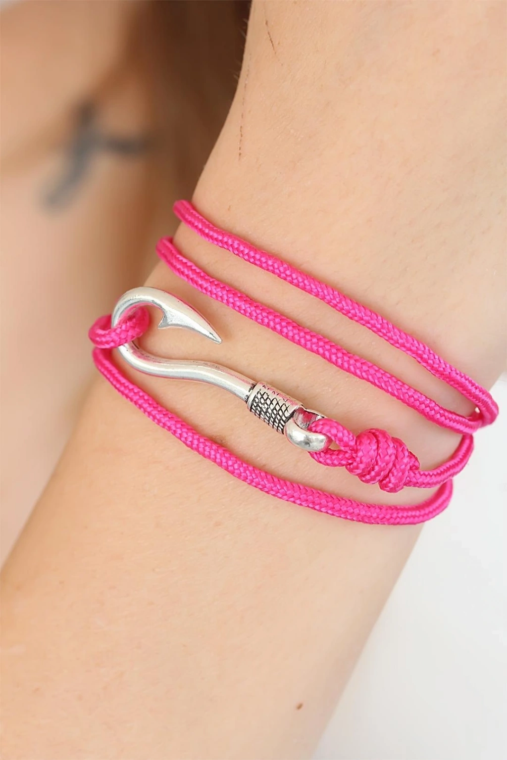 Farkınızı Fuşya Renk Gümüş Metal Kancalı Bayan Çoklu Bileklik ile öne çıkarın.