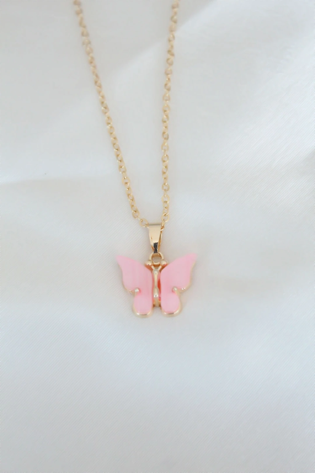 Gold Kaplama Pembe Sedefli Kelebek Kolye