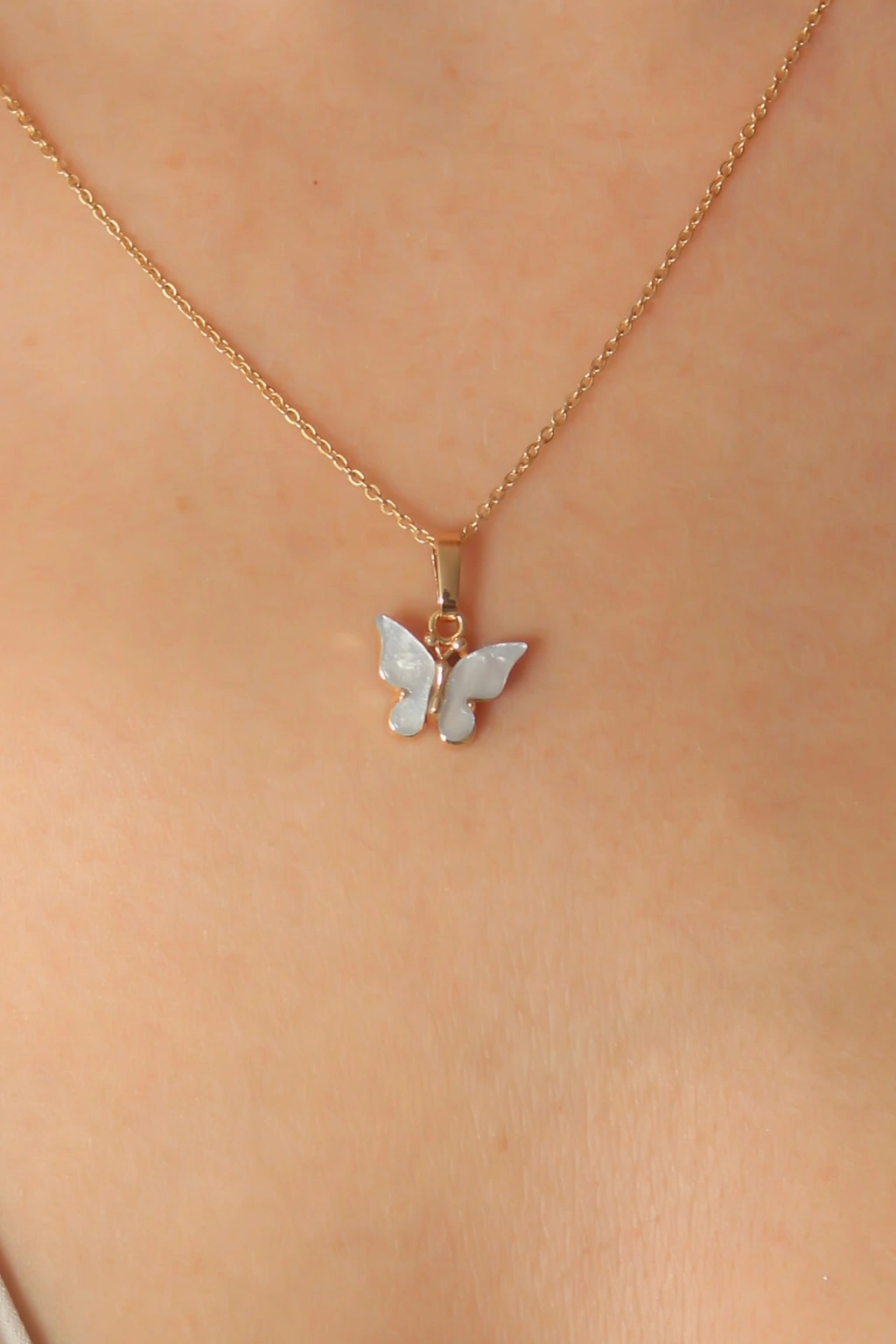 Gold Mavi Renk Kelebek Figür Kadın Kolye
