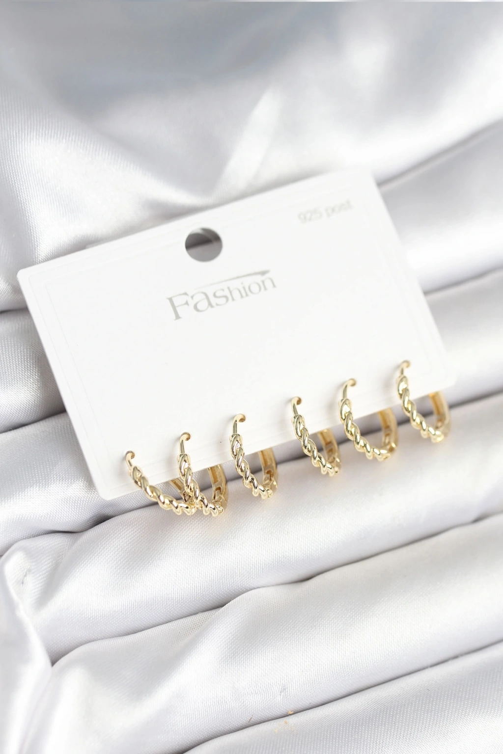 Gold Renk Burgu Halka Model 925 Ayar Gümüş Çivili Pirinç Küpe Seti
