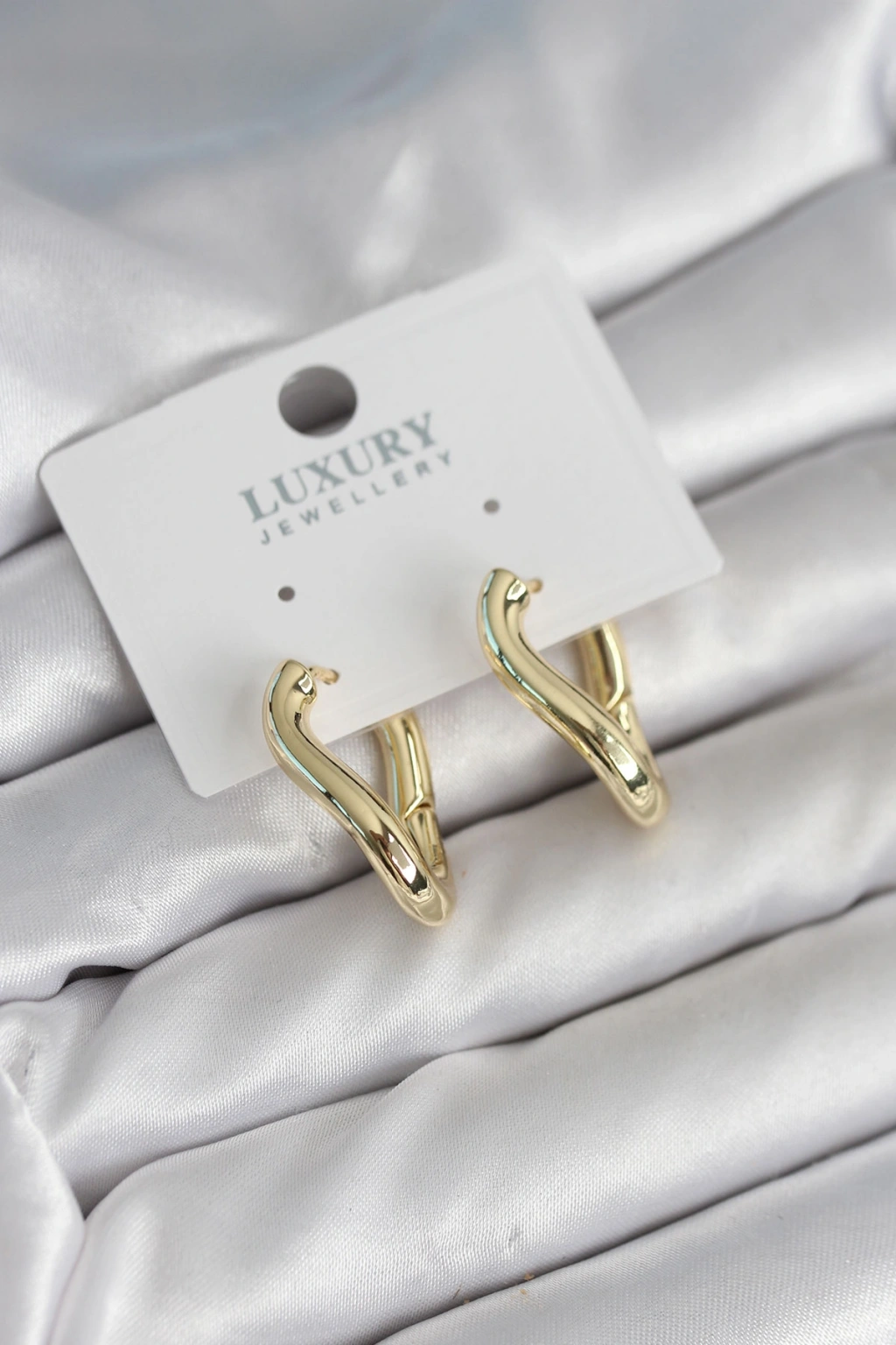 Gold Renk Eğik Halka Model Pirinç Kadın Küpe