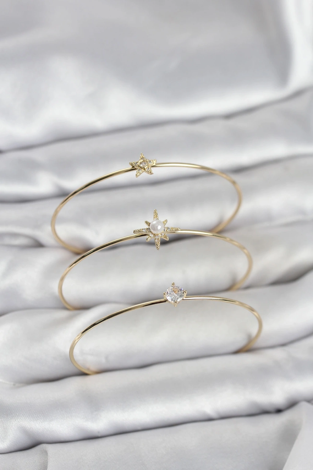 Gold Renk Kutup Yıldızı Model Zirkon Taşlı 3'lü Kadın Bileklik Kombini