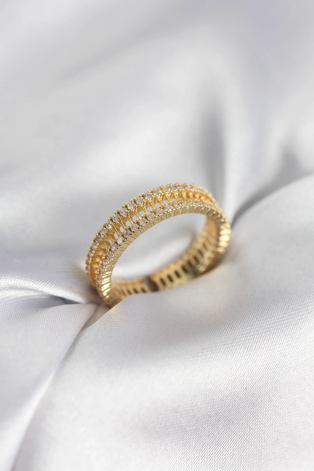 Gold Renk Minimal Zirkon Taşlı Kadın Yüzük