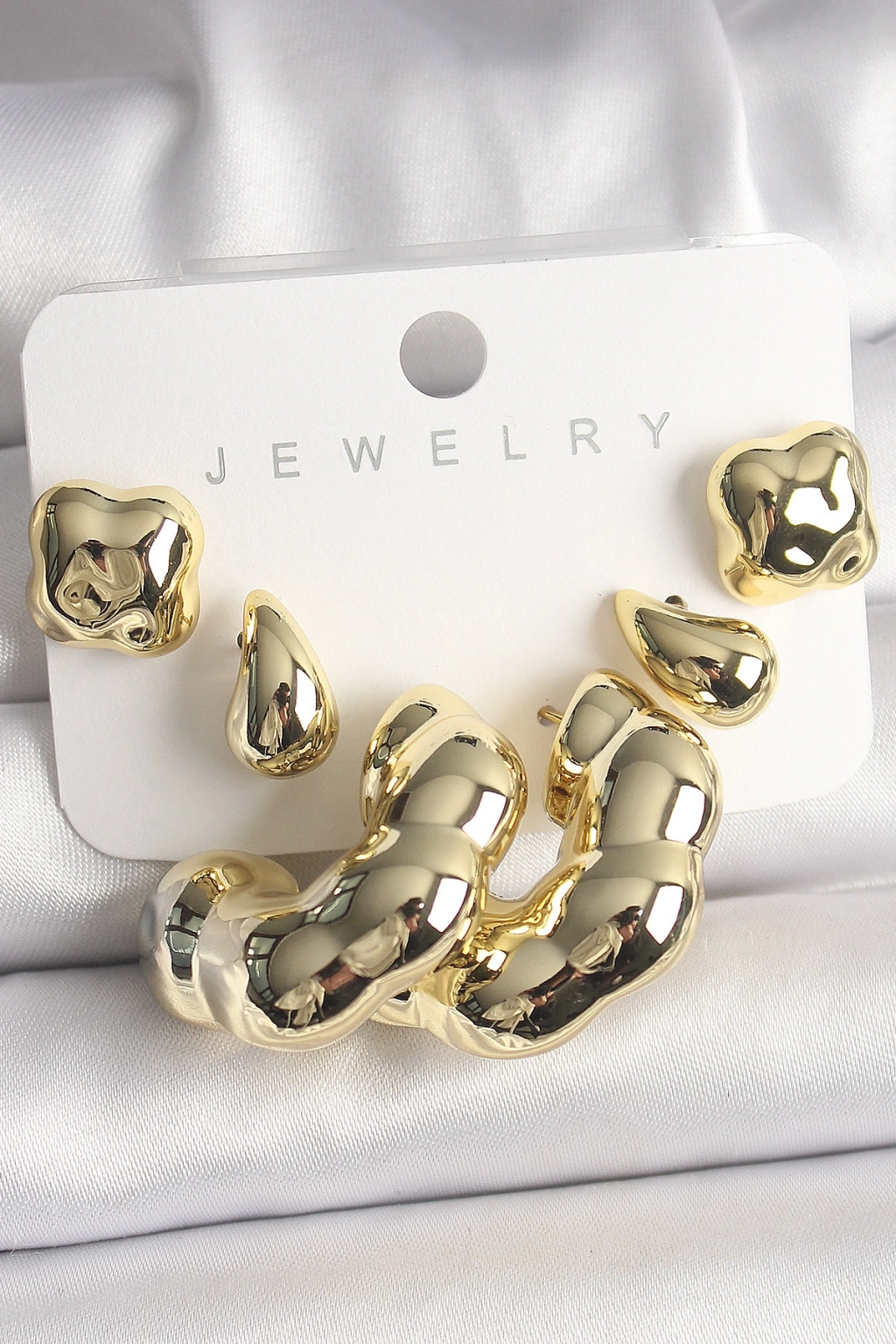 Gold Renk Yonca Damla Halka Model CCB Plastik Kadın Küpe Seti