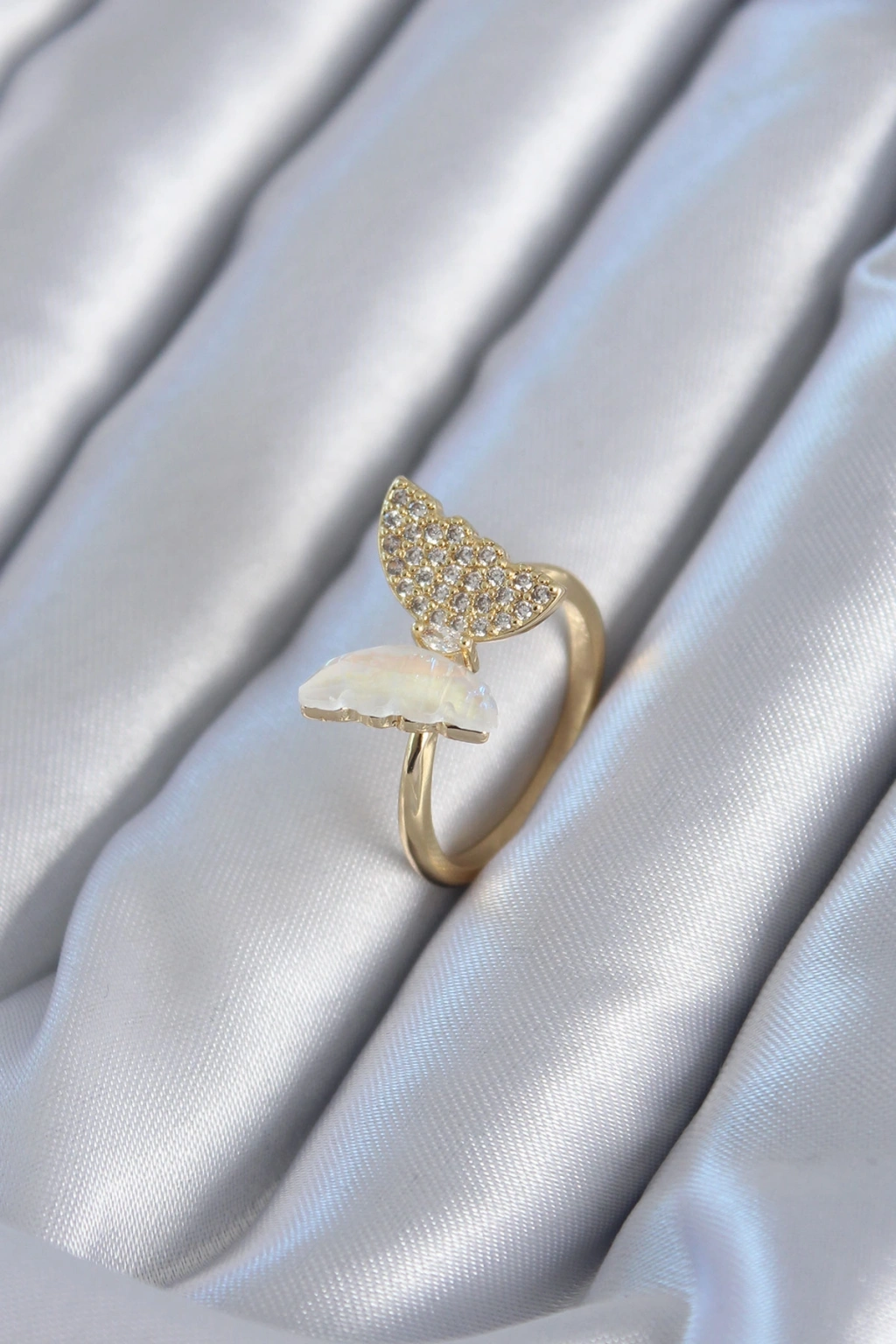 Gold Renk Zirkon Taş Detay Pirinç Kadın Yüzük
