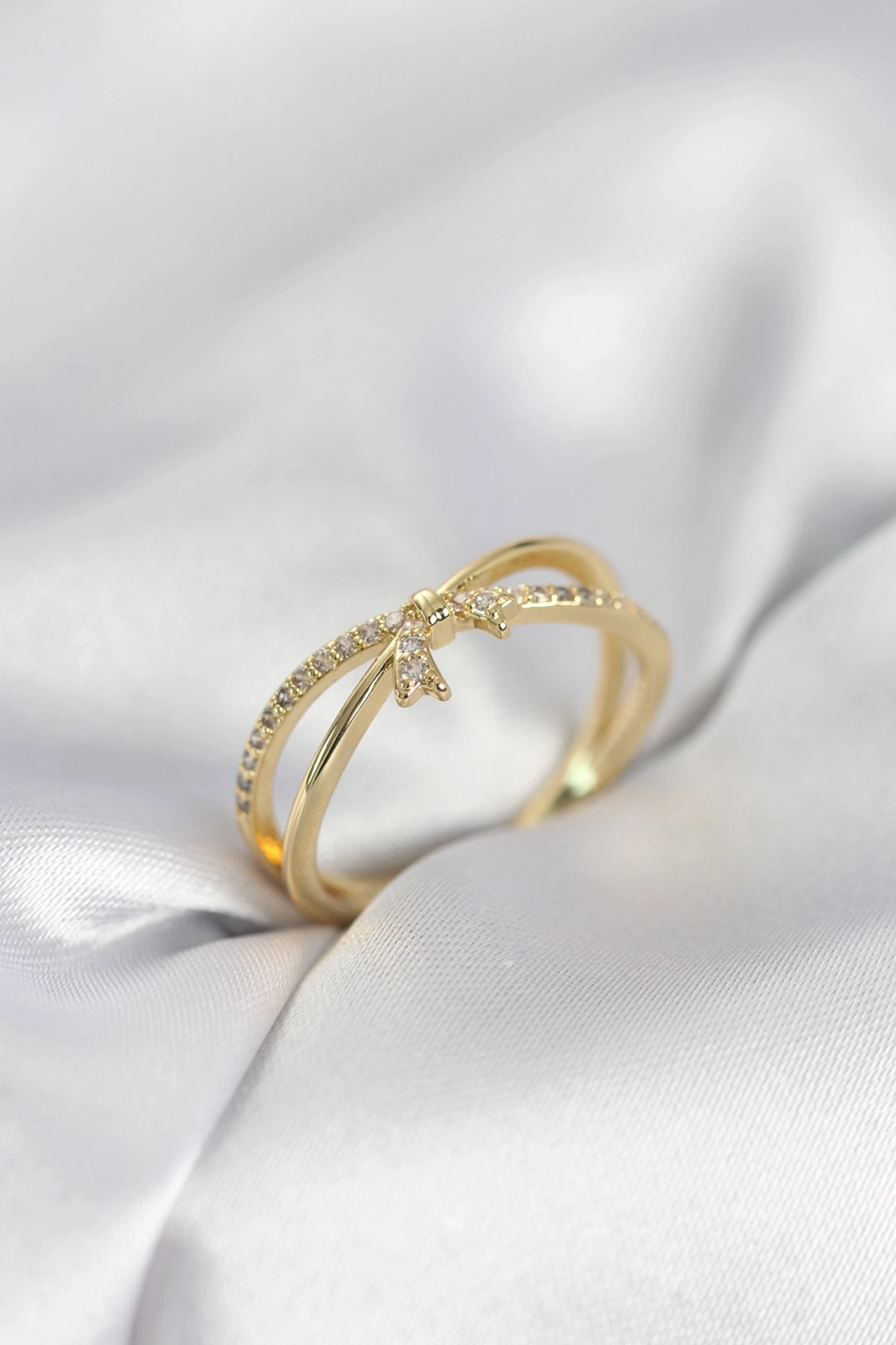Gold Renk Zirkon Taşlı Fiyonk Model Kadın Yüzük