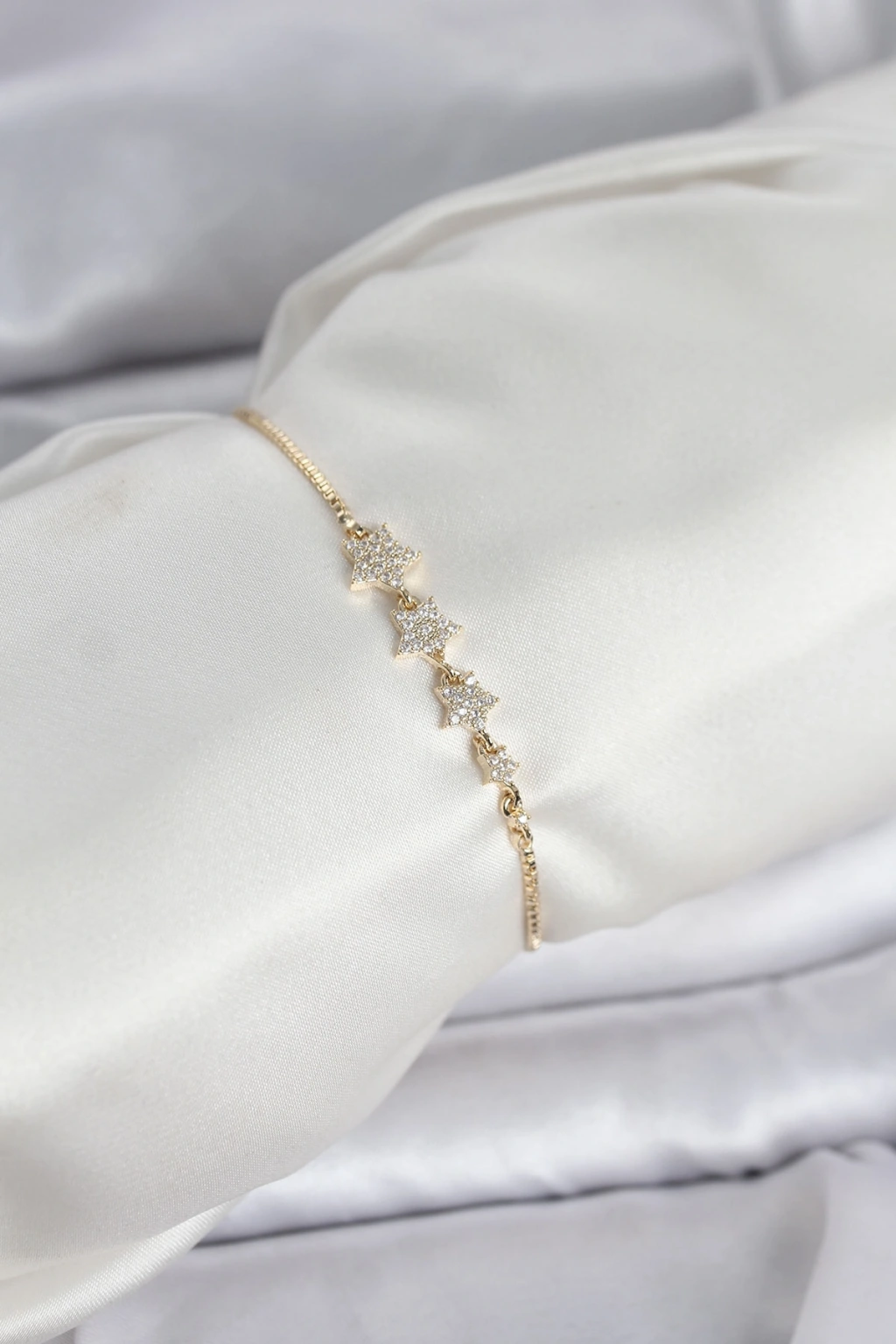 Gold Renk Zirkon Taşlı Yıldız Model Asansörlü Kadın Bileklik