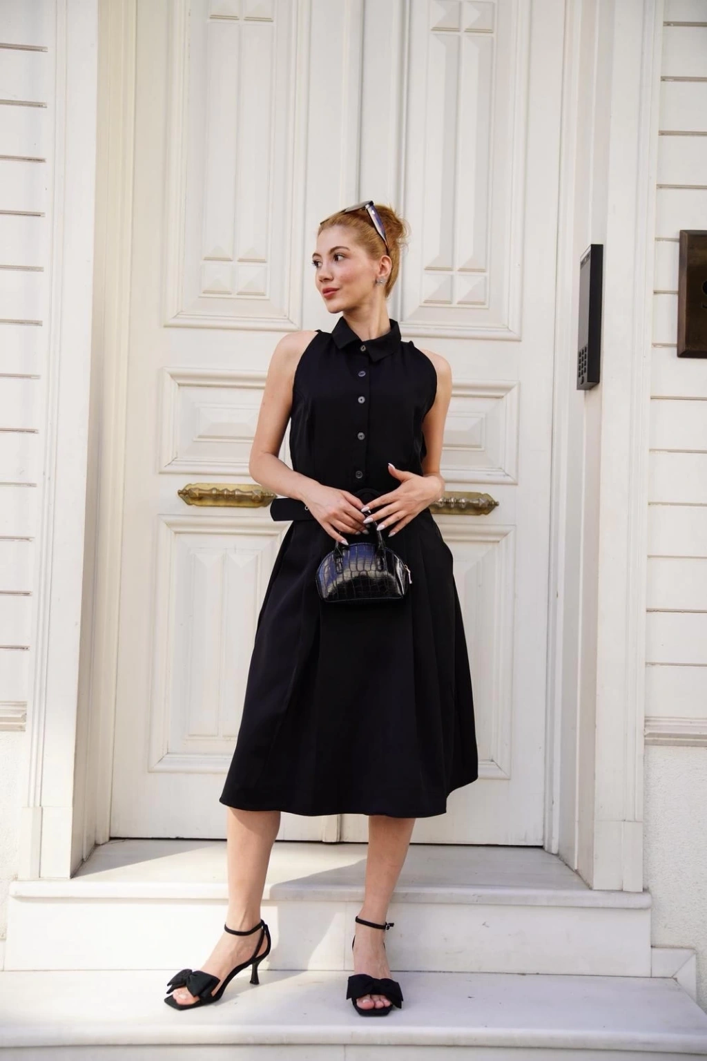 Gömlek yaka kemerli elbise siyah s255061--Gömlek yaka kemerli siyah elbise, gardırobunuzun vazgeçilmez parçası olmaya aday! Zarif tasarımıyla dikkat çeken bu elbise, şıklığı ve rahatlığı bir arada sunuyor. %100 pamuklu kumaşı sayesinde gün boyu konforu garantilerken, belindeki kemer detayıyla da feminen bir görünüm sağlıyor. Hem günlük hayatta hem de özel davetlerde rahatlıkla tercih edebileceğiniz bu elbise, şıklık konusunda sizi yalnız bırakmayacak. Ürün Özellikleri: Siyah renk Gömlek yaka Kemer detayı Uzun kollu Yumuşak ve esnek kumaş Bel kısmında etkisi Çeşitli beden seçenekleri