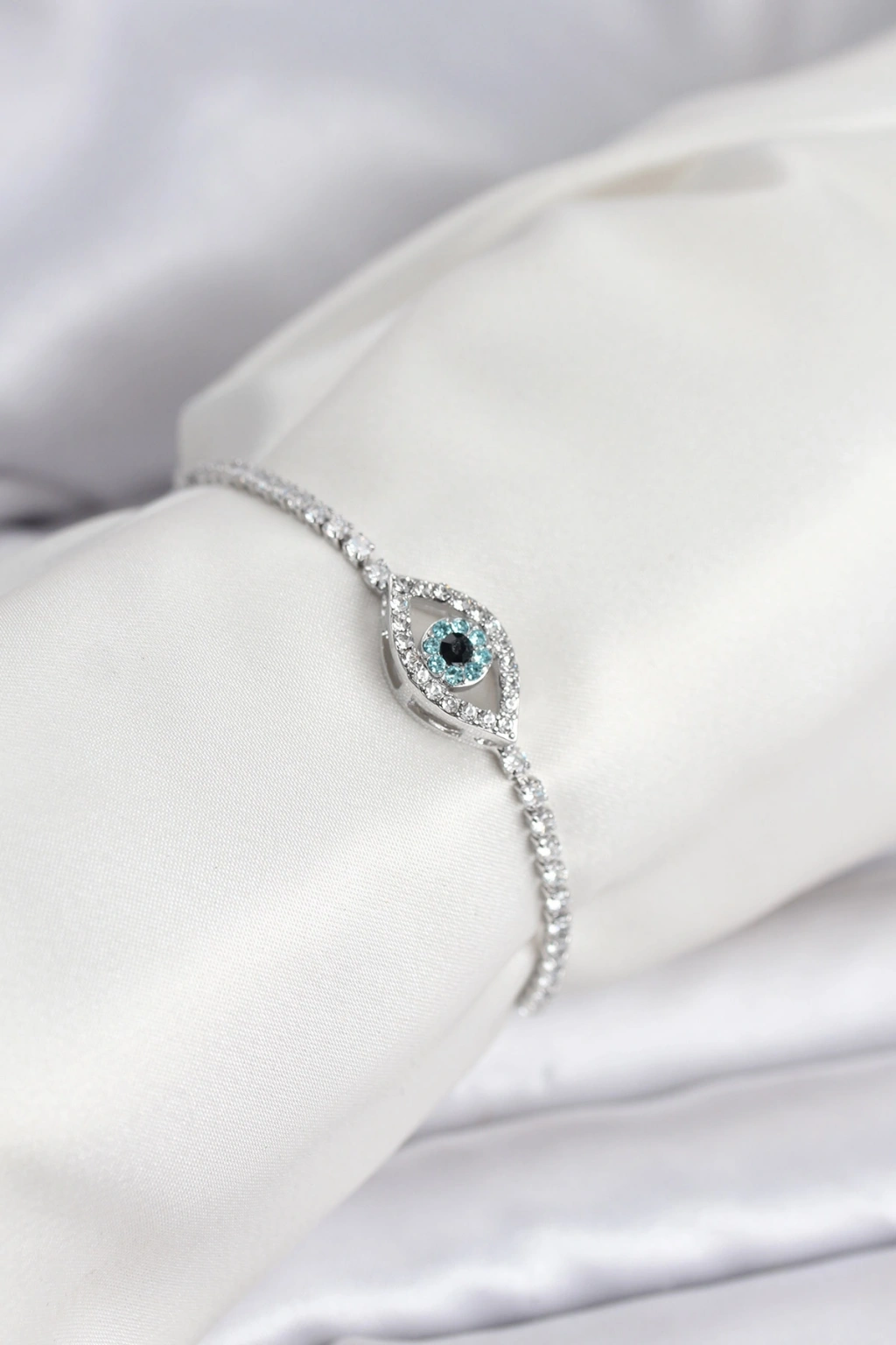 Göz Model Zirkon Taşlı Gümüş Renk Asansörlü Su Yolu Bileklik
