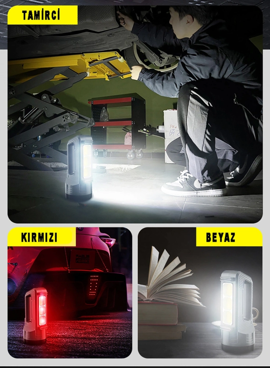 Güçlü Şarjlı Fener Masa Lambası Wt-603 Ürün Kodu :Wt-603 Boyutlar : 203mm83mm51mm Işık Özelliği :3/ COB Led +1 Ultra SMD Parlak Led Işık Rengi :Beyaz- Kırmızı Çalışma Süresi :12-24 saat Gövde Malzemesi :Sert Plastik Kullanım Özellikleri :Masa Üstünde Taşıma Askısı İle Elde Ve Duvara Monte , Her Yeri Kolay Aydınlık Teknik Özellikleri :Şarj Edilebilir Batarya 2x18650 Kutu İçeriği :Ürün , type c Şarj Kablosu PowerBank Olarak Kullanım İanı İle Telefonu Şarj Etme İanı Ampül Ömrü :100.000 Saattir Kullanım Yeri :Av, Kamp,Ev, Okul, Araba, Otel, Restorant Her Yerde Kolay Şarj İanı Ve Kullanım Tasarruflu Enerji Harcama Özelliği Önemli Uyarılar :Direk Göz İle Temas Ettirmeyiniz İlk Kullanımdan Önce 8 saat Şarj Ediniz. GÜÇLÜ ŞARJLI FENER MASA LAMBASI WT-603 Yeni stil! Güçlü Şarjlı Fener Masa Lambası Wt-603 Ultra güçlü fener masa lambası! Süper parlak COB Led yüksek kaliteli ışık kaynağı daha kararlı, uzun ve yüksek parlaklık farklı 6 modda olağan dışı durumların bile kullanımını karşılamak için Ultra SMD parlak led geniş alan projeksiyonları, yumuşak ışık yeni tip COB lamba yuvası, yüksek parlaklık, düşük enerji tüketimi, gözlere zarar vermeyen Güçlü Şarjlı Fener Masa Lambası Wt-603 güçlü ve hafif taşınması kolaydır. Düşük güç tüketimi ve uzun ömürlü 3/ COB Led +1 Ultra SMD Parlak LED ampul değiştirme sorununu ortadan kaldırır. Akıllı güç tarzı, en çok ihtiyacınız olan güçlü ışık ultra uzun aydınlatma aralığı 800 metreye kadar uzun mesafe geniş alan aydınlatması sağlar. Güçlü Şarjlı Fener Masa Lambası Wt-603 ciddi depolama gücüne sahip uzun ömürlü, şarj edilebilir 2x18650 pil ile tam şarj, neredeyse diğer tüm el fenerlerinden daha uzun süre dayanacak şekilde yapılır. Her alanda kullanım kolaylığı sunan Güçlü Şarjlı Fener Masa Lambası Wt-603 taşıma askısı ve duvara monte özelliği ile çalışma ev bakımı ve açık hava etkinlikleri gibi çoğu iç mekân için uygundur. Kamp, Balıkçılık, Yürüyüş, harita okuma, gece balıkçılığı, gece uçuşu, yelken, mağaracılık ve avcılık vb. kırmızı ışığı sayesinde trafik de acil durum için kullanım sağlamaktadır. Ana Özellikler Uzunluğu 20 cm’dir. 1 Adet Şarj Edilebilir batarya 2x18650 pil ile kullanılır. Tasarruflu enerji harcama özelliği ile uzun süre kullanım sağlamaktadır. 3/ COB Led +1 Ultra SMD Parlak Led masa lambası olarak kullanabilir. Kutu içeriğinde Type-c Şarj kablosu mevcuttur. Tasarruflu enerji harcama özelliği ile uzun süreli kullanabilirsiniz.
