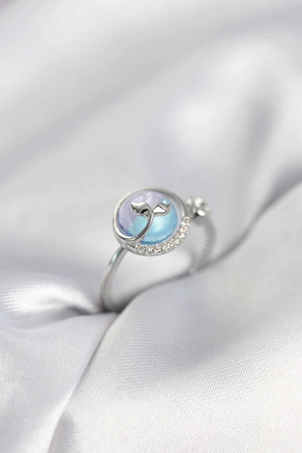 Gümüş Renk Balık Kuyruğu Okyanus Model Kadın Yüzük
