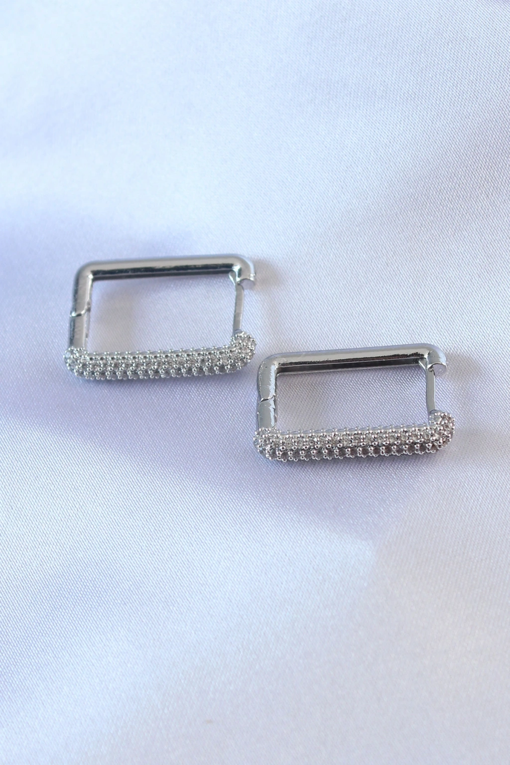 Gümüş Renk Kare Model Zirkon Taşlı Pirinç Kadın Küpe