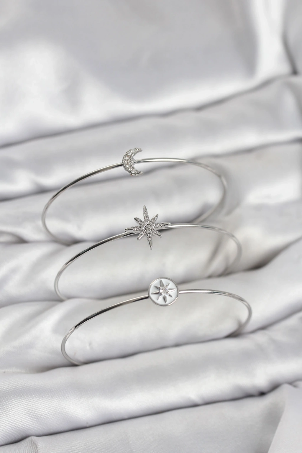 Gümüş Renk Zirkon Taşlı Kutup Yıldızı Model 3'lü Kadın Bileklik Kombini