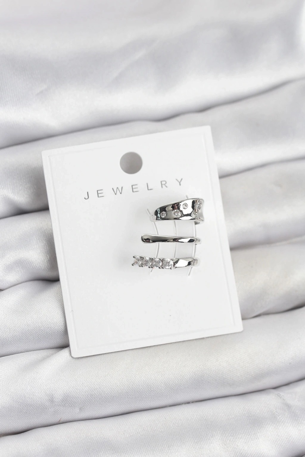 Gümüş Renk Zirkon Taşlı Pirinç Kıkırdak Küpe