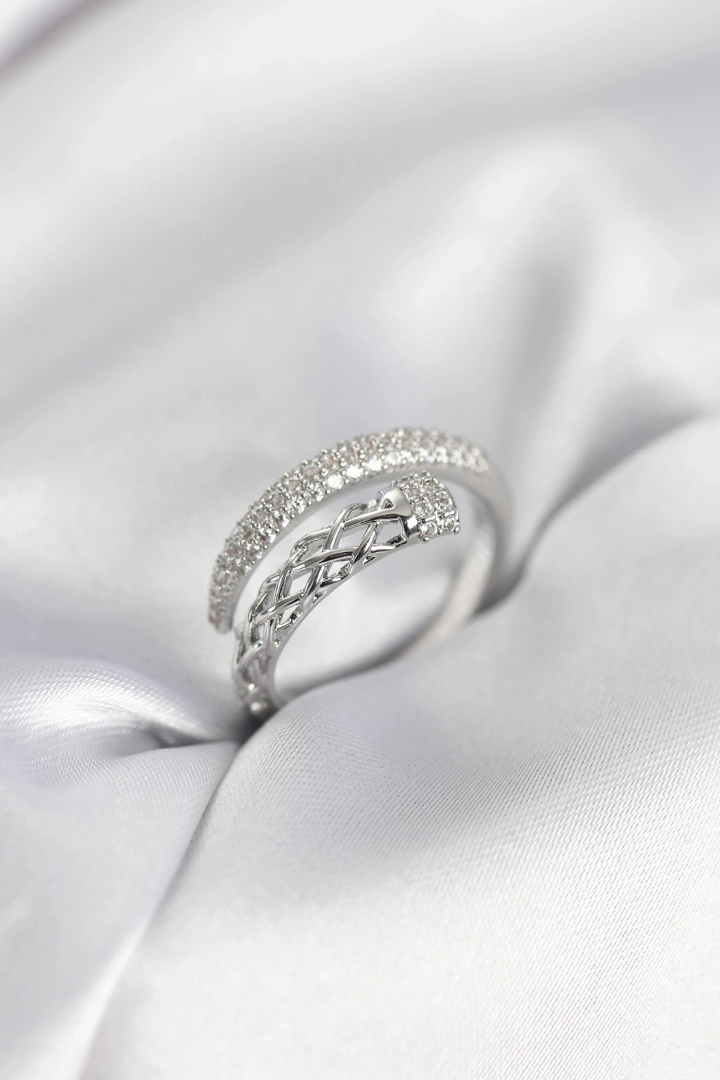 Gümüş Renk Zirkon Taşlı Sarmal Kadın Yüzük