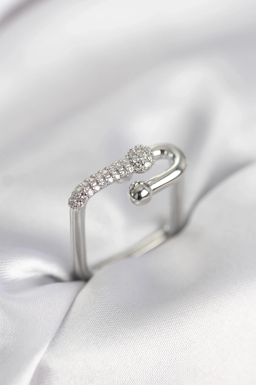 Gümüş Renk Zirkon Taşlı Tifani Model Kare Kadın Yüzük