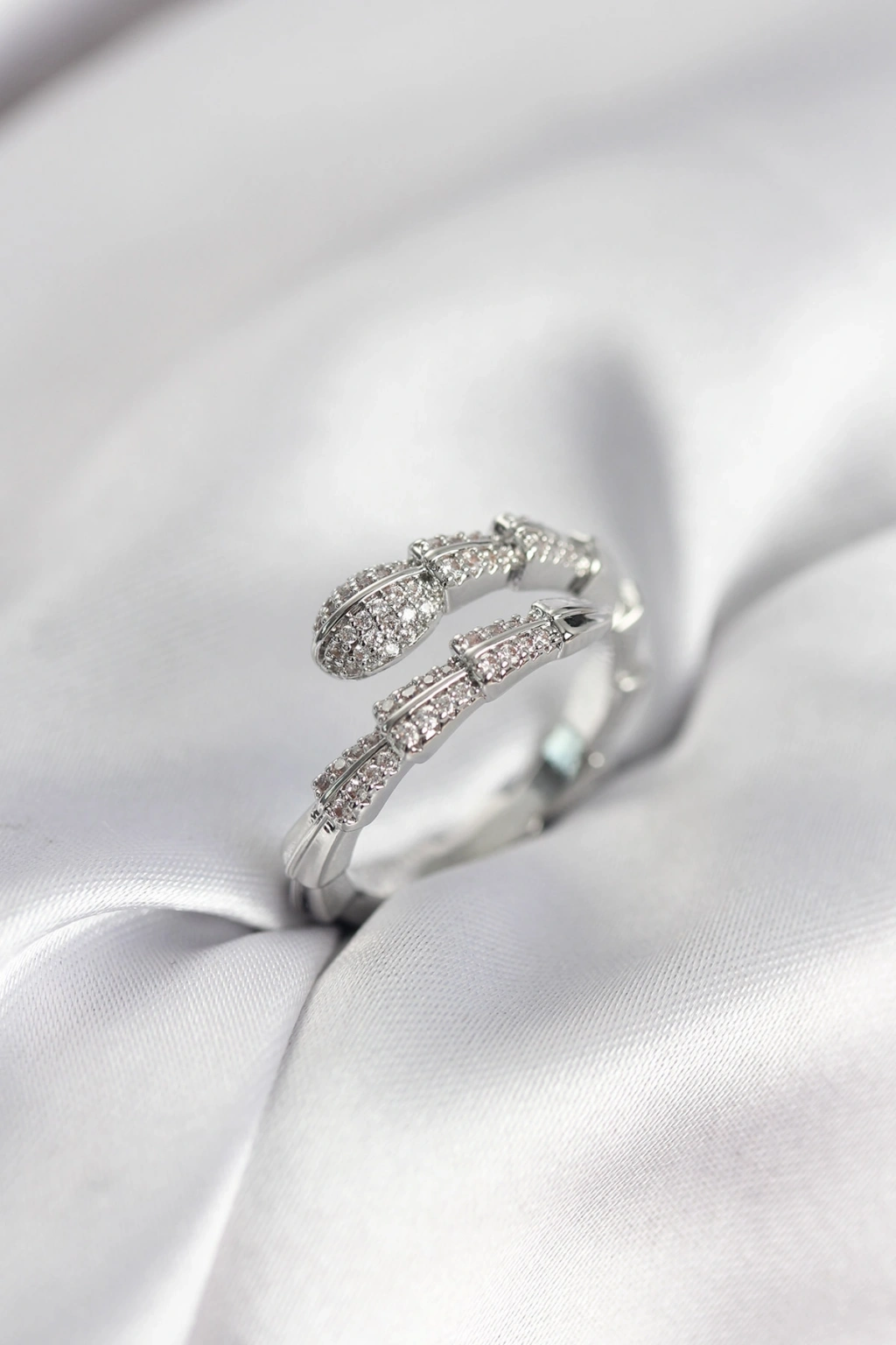 Gümüş Renk Zirkon Taşlı Yılan Model Kadın Yüzük