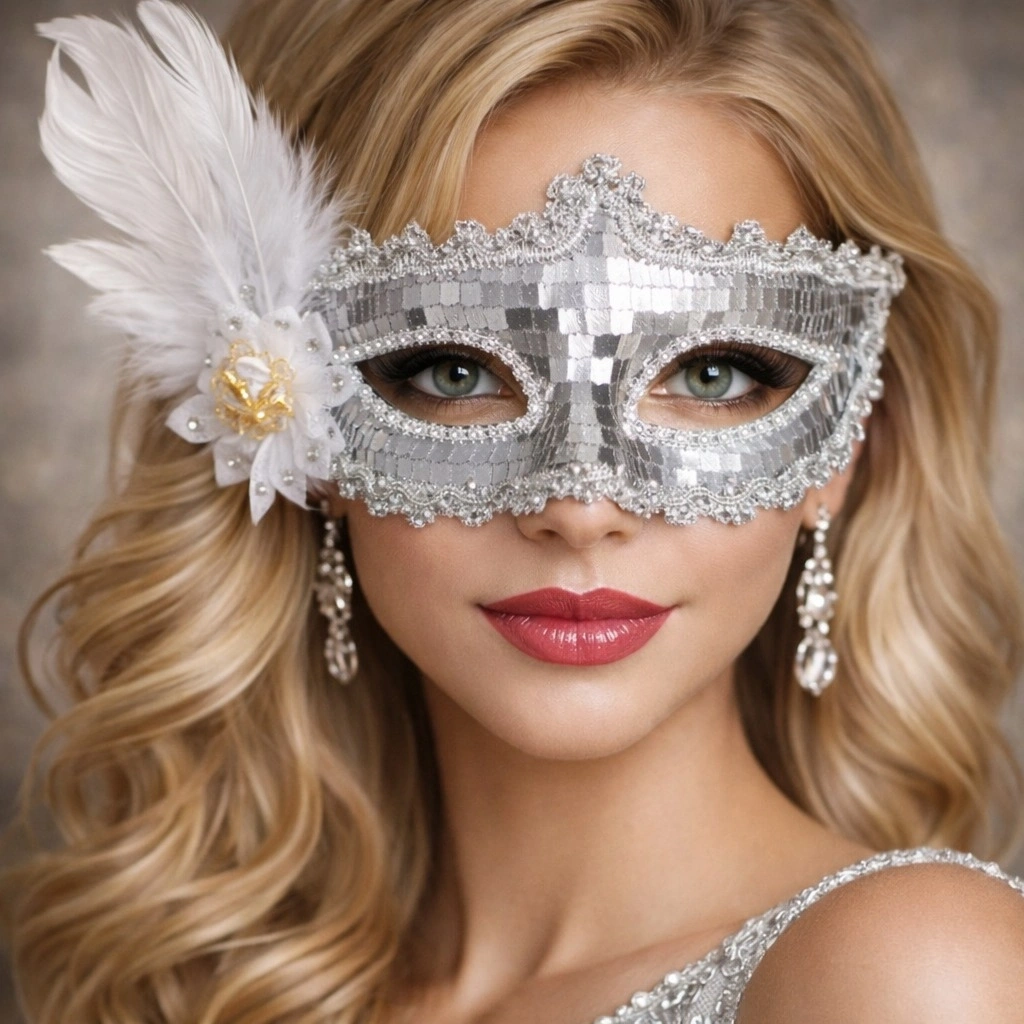 Işıltılı ve zarif tasarımıyla öne çıkan gümüş Venedik maskesi, parlak pul payet kaplama yüzeyi ve taş işlemeli göz çevresiyle dikkat çeker. Yan bölümde bulunan tüy ve dekoratif detay maskeye şık ve sofistike bir hava kazandırır.Hafif yapısı sayesinde konforlu kullanım sunar. Arkadan bağlamalı tasarımı farklı yüz tiplerine uyum sağlar. Öne Çıkan Özellikler:• Parlak gümüş pul payet kaplama• Taş işlemeli göz çerçevesi• Yan kısımda zarif tüy detayı• Hafif ve rahat kullanım• Davet, b ve özel organizasyonlar için idealIşıltılı ve dikkat çekici bir görünüm isteyenler için tasarlanmış şık bir parti aksesuarıdır.
