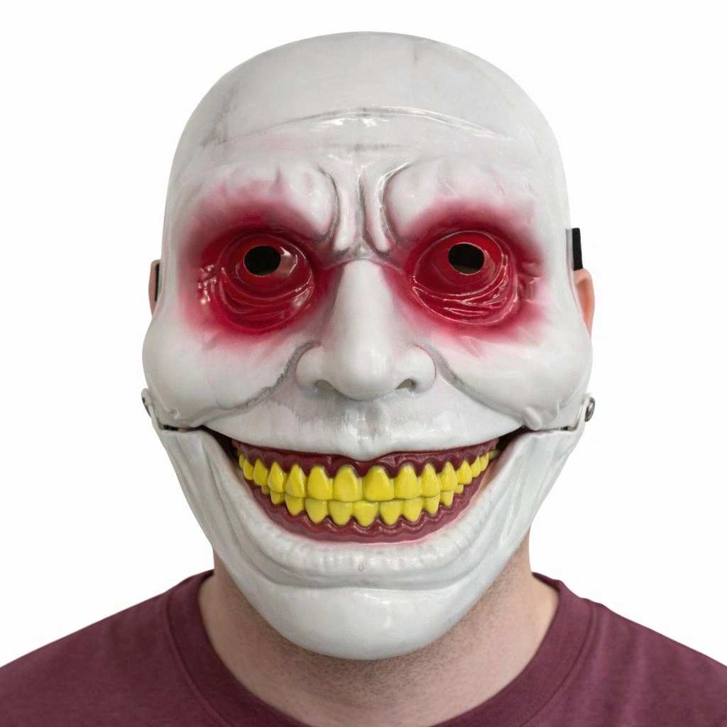 Gerçek korku etkisi tmak isteyenler için tasarlanmış hareketli çene mekanizmalı korku maskesi, sıradan maskelerden tamamen farklıdır.Bu maskenin en dikkat çekici özelliği, takan kişinin ağzını açıp kapatmasıyla birlikte maskenin çene kısmının da senkron şekilde açılıp kapanmasıdır. Yani sadece görünüm değil, hareketle birlikte gerçekçi bir korku efekti oluşturur.Detaylı diş tasarımı, ürkütücü göz çevresi ve yüz hatları sayesinde karanlık ortamda oldukça etkileyici bir görünüm sunar. Fotoğraf ve video çekimlerinde güçlü bir görsel etki oluşturur.Maskenin arka kısmında bulunan lastik bağlama aparatı sayesinde farklı yüz tiplerine kolayca uyum sağlar ve kullanım sırasında sabit kalır. Hafif yapısı sayesinde uzun süreli kullanımlarda rahatsızlık vermez.Ürün Özellikleri Hareketli çene mekanizması (ağızla senkron açılır-kapanır) Gerçekçi diş ve yüz detayı Lastik bağlama sistemi Yetişkin kullanımına uygundur Hafif ve dalı malzeme Yüksek korku efekti