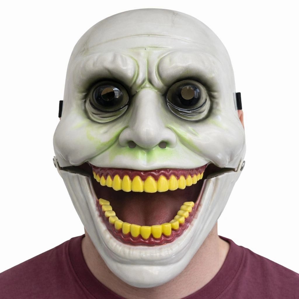 Gerçek korku etkisi tmak isteyenler için tasarlanmış hareketli çene mekanizmalı korku maskesi, sıradan maskelerden tamamen farklıdır.Bu maskenin en dikkat çekici özelliği, takan kişinin ağzını açıp kapatmasıyla birlikte maskenin çene kısmının da senkron şekilde açılıp kapanmasıdır. Yani sadece görünüm değil, hareketle birlikte gerçekçi bir korku efekti oluşturur.Detaylı diş tasarımı, ürkütücü göz çevresi ve yüz hatları sayesinde karanlık ortamda oldukça etkileyici bir görünüm sunar. Fotoğraf ve video çekimlerinde güçlü bir görsel etki oluşturur.Maskenin arka kısmında bulunan lastik bağlama aparatı sayesinde farklı yüz tiplerine kolayca uyum sağlar ve kullanım sırasında sabit kalır. Hafif yapısı sayesinde uzun süreli kullanımlarda rahatsızlık vermez.Ürün Özellikleri Hareketli çene mekanizması (ağızla senkron açılır-kapanır) Gerçekçi diş ve yüz detayı Lastik bağlama sistemi Yetişkin kullanımına uygundur Hafif ve dalı malzeme Yüksek korku efekti