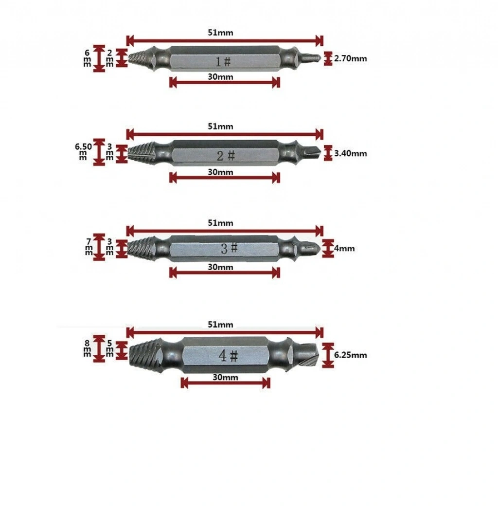Hasar Görmüş Vida Çıkarıcı 4 Farklı Uç Tamirat ve montaj işlerinde uğraşırken sorunlu vida problemini Hasar Görmüş Vida Çıkarıcı ile ortadan kaldırın!Mutfak, banyo, dolap, çekmece vb yerlerde hasar görmüş vidaları kolayca söküp, çıya yan son derece pratik bir üründürHepimizin karşılaştığı bu duruma artık bir son veren Hasar Görmüş Vida Çıkarıcı tüm işlerinizi sorunsuz ve hızlı bir şekilde halledebileceksiniz Tüm sorunlu düz ve yıldız vidaları yerinden kolayca söker. Hasar Görmüş Vida Çıkarıcı birbirinden farklı 4 uç seçeneği ile her türlü paslanmış, yalama olmuş, körelmiş, eğilmiş, yamulmuş vidaları kolayca yerinde söker atar Ürün Özellikleri:4 farklı uçHer türlü matkap ve vidalama aletleri ile uyumluPaslanmaz çelikKolay ve hızlı kullanımTüm sorunlu vidaları kolayca söker Paket İçeriği:1 adet 1" (inç) Vida Çıkartma Ucu1 adet 2" (inç) Vida Çıkartma Ucu1 adet 3" (inç) Vida Çıkartma Ucu1 adet 4" (inç) Vida Çıkartma Ucu