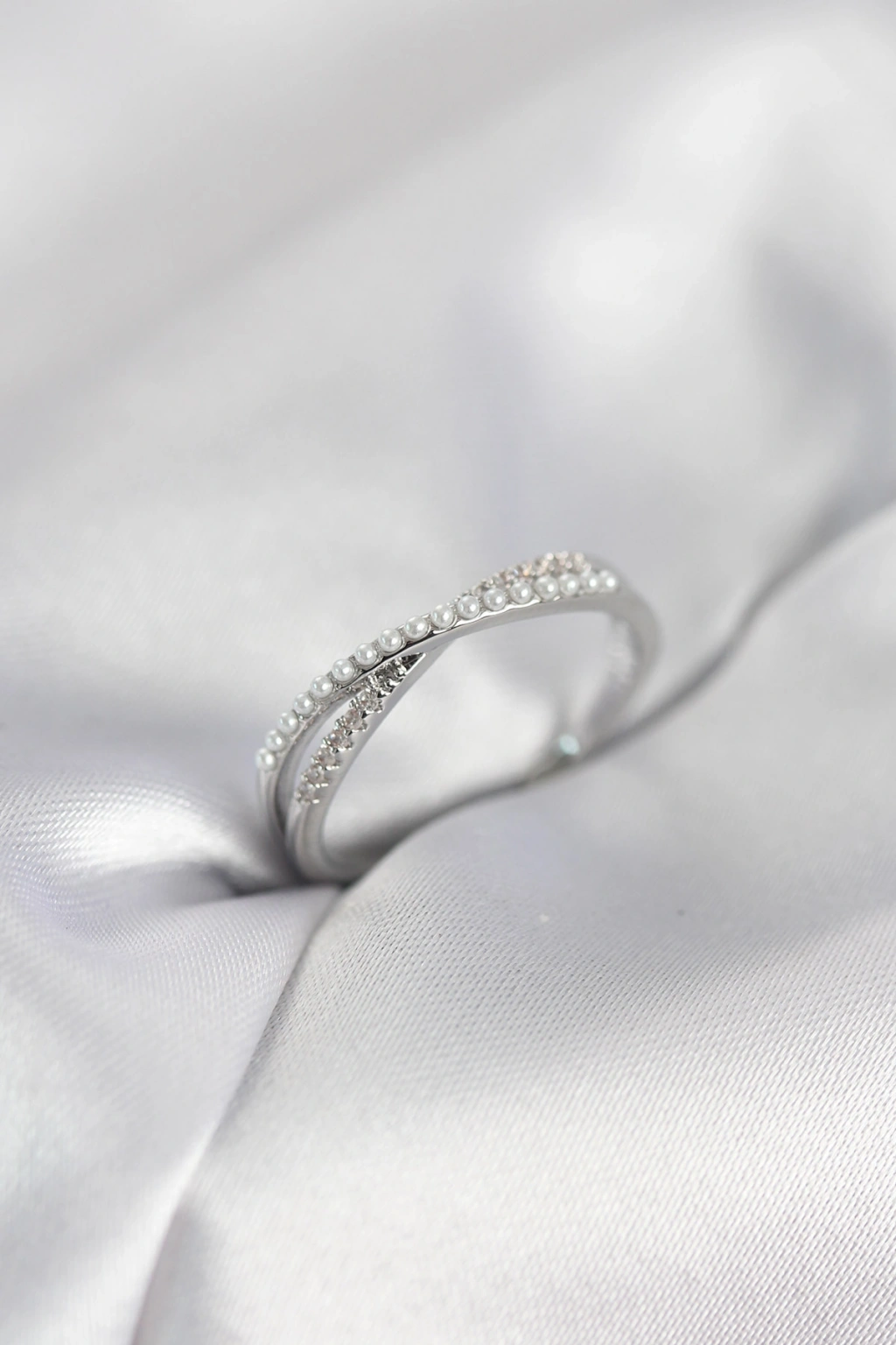 İncili ve Zirkon Taşlı Gümüş Renk Kadın Yüzük