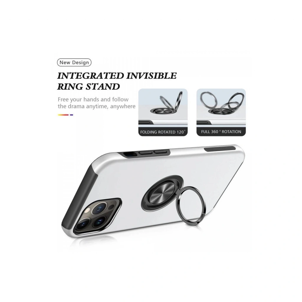 İphone 13 Pro Kılıf Elit Yüzüklü Kapak - Gümüş