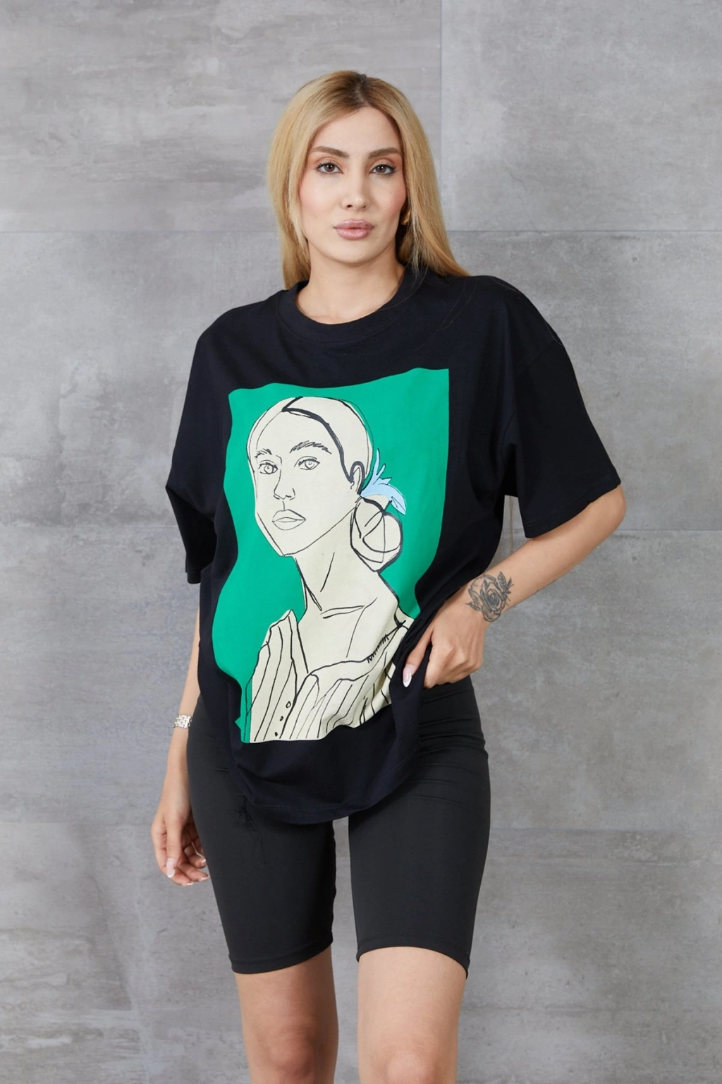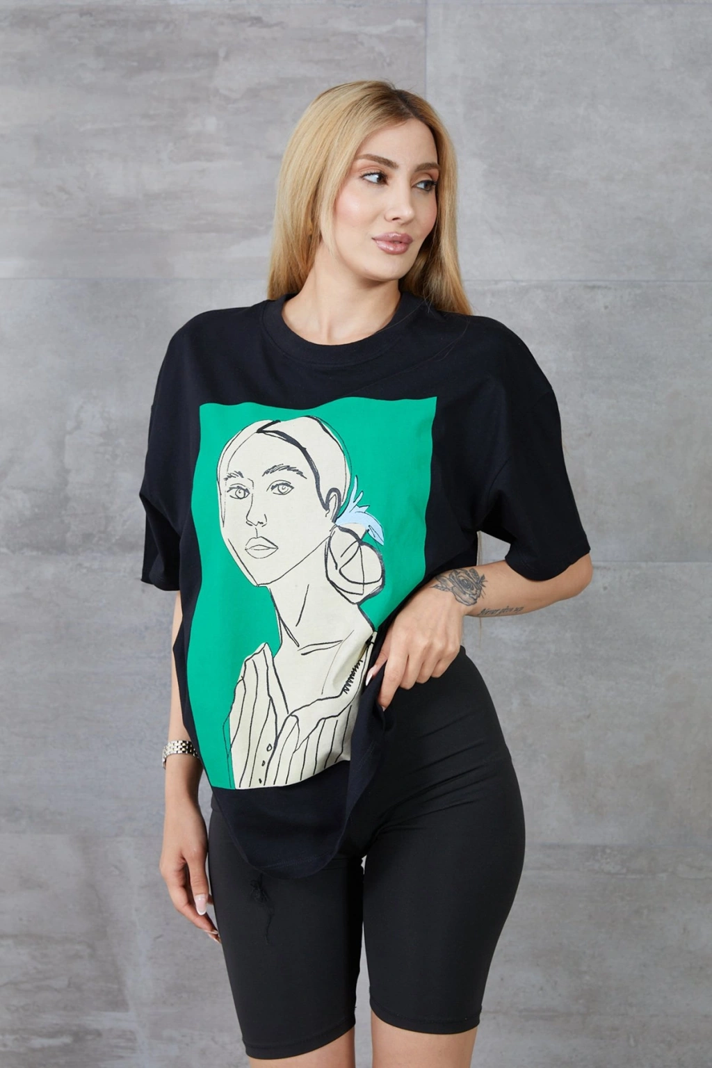 Silüet Baskılı T-shirtÜrün uzunluğu : 70 cm (1-3 cm arası değişiklik gösterebilir.)Ürün Genişliği: 53 cm (1-3 cm arası değişiklik gösterebilir.)Modelin üzerindeki ürün S bedendir.
