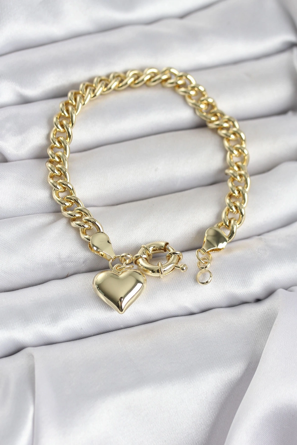 Kalp Detaylı Gold Renk Pirinç Kadın Bileklik