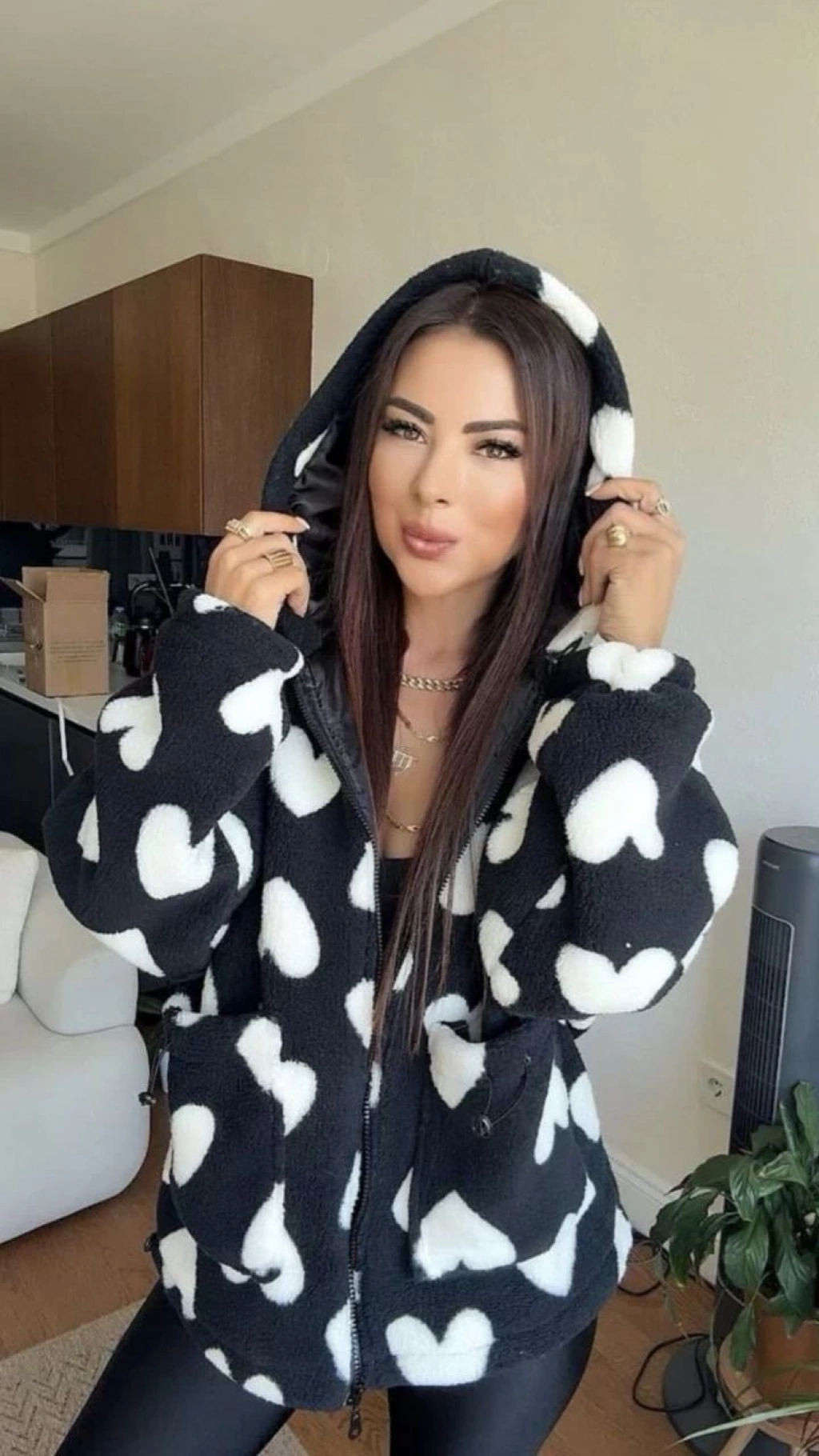 Kalpli peluş ceket içi astarlı siyahbeyaz--Şık ve zarif bir görünüm elde etmek isteyen kadınlar için ideal bir seçenek olan Kalpli Peluş Ceket, gardırobunuzu şenlendirecek harika bir parça! Astarlı yapısı sayesinde soğuk havalarda sizi sıcacık tutarken, şık kalpli deseniyle de gözleri üzerinize çekecek. Siyah ve beyazın uyumlu kombinasyonu, her stil ile mükemmel bir şekilde uyum sağlar. Özel tasarımı ve kaliteli malzemesi ile uzun yıllar boyunca güvenle kullanabileceğiniz bir cekettir. İçi astarlı yapıya sahiptir. Siyah ve beyaz renklerin harika kombinasyonu. Kalpli deseni ile şık ve göz alıcı bir görünüm. Sıcacık tutan peluş kumaşı. Uzun ömürlü ve dalı yapısı.
