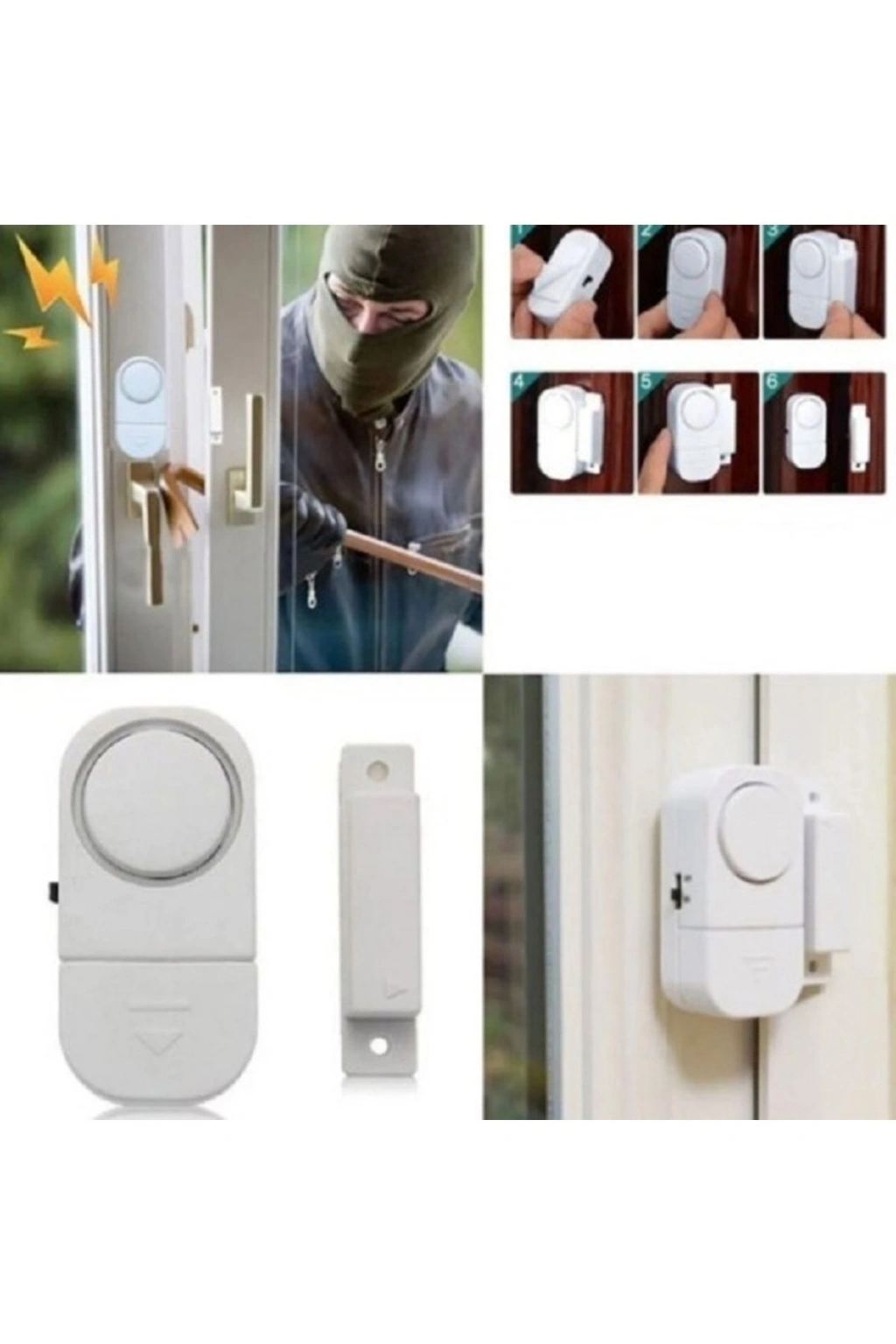 Üzerindeki yapışkan bantlar yardımıyla pencere ve kapılar üzerine kolaylıkla monte edilir.90 dB şiddetinde yüksek sesle uyarı verir.4,5 V DC - 3 adet LR44 tip pil ile çalışmaktadır.Montaj Talimatı:Çift taraflı yapışkan bandı kullanarak ana üniteyi,Kapı veya pencerenin hareketsiz bölümüne,Diğer küçük mıknatısı da kapı veya pencerenin açılabilir kanadı üzerineMıknatıslar birbirine bakacak ve aradaki boşluk 6-7 mm yi geçmeyecek şekilde yapıştırın.Açma kapama anahtarı ON konumuna getirip o şekilde bırakın.Kapı veya pencere açıldığında otomatik olarak 90 dB şiddetinde sesle uyarı verecektir.Pil i: Piller Takılı Halde Gelecektir.Pil yuvasına LR44 yeni pili (+) (-) kutuplarına dikkat ederek yerleştirip kapağını kapatın.Ürün Ölçüsü:Uzunluk: 6,5 cmGenişlik: 4,5 cmYükseklik: 2,5 cm