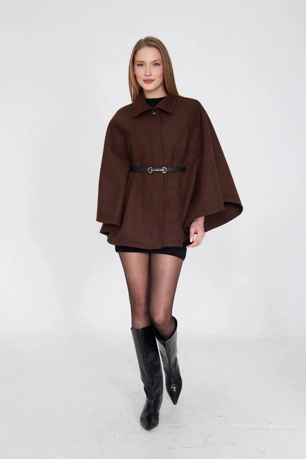 Kemerli kaşe panço kahve pt--Kahve rengi kemerli kaşe panço şıklık ve rahatlığı bir arada sunuyor. Soğuk havalarda sıcacık tutarken, şık tasarımıyla her kombini tamamlıyor. Ürün Özellikleri: Kahve rengi Kemer detaylı V yakalı ve uzun kollu İki yan cepli Kaşe kumaştan üretilmiştir Ürün Boyu: Standart bedendir Kadın giyimde şıklığı ve konforu tercih edenler için kahve kaşe panço ideal bir seçimdir. Günlük kullanımdan özel davetlere kadar birçok farklı ortamda rahatlıkla kullanılabilir.