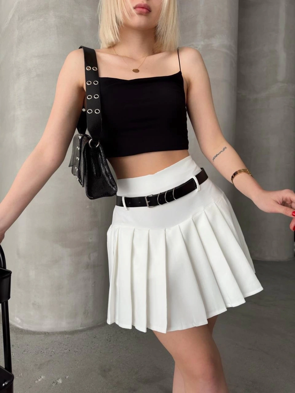Kemerli piliseli şort etek beyaz s25305--Yaza özel şıklık ve rahatlık sunan kemerli piliseli şort etek beyaz s25305, gardırobunuzun favori parçalarından olmaya aday. İşte bu şık parçanın özellikleri: Kemer detayı ile belinizi vurgular. Piliseli tasarımıyla feminen bir hava katar. Rahat kesimi sayesinde gün boyu konfor sunar. Üst kısmı şort altı ise etek formundadır, kombinlerinize farklılık katar. Şıklık ve konforu bir arada arayan kadınların tercihi olan bu şort etek, günlük ve özel günlerde şık kombinler oluşturmanızı sağlar.