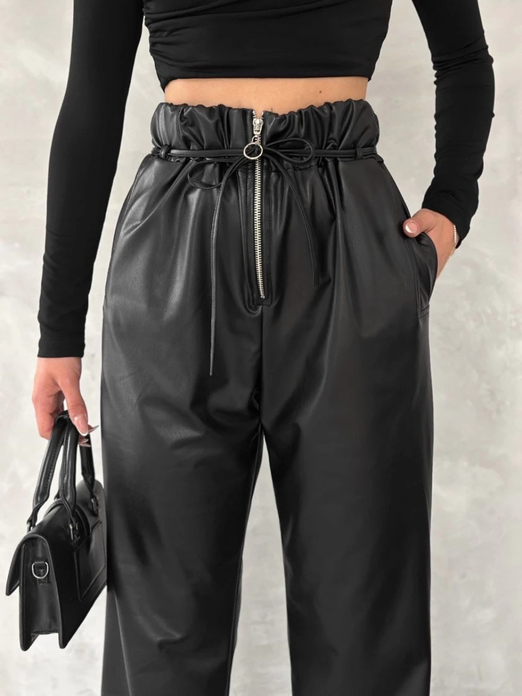 Kendinden ince kemerli deri pantolon siyah --İnce kemer detayıyla şık bir görünüm sunan Deri Pantolon, gardırobunuzun vazgeçilmez parçalarından biri olmaya aday! Ayarlanabilir kemer detayı sayesinde belinize mükemmel uyum sağlar. Yüksek kaliteli deri malzeme sayesinde uzun ömürlü ve dalıdır. Şık ve modern tasarımıyla günlük kullanıma ve özel günlerde kombinleyebilirsiniz. Güvenilir ve şık görünüm elde etmek isteyen kadınların tercihi olan Deri Pantolon, hem rahatlığı hem de şıklığı bir arada sunuyor.