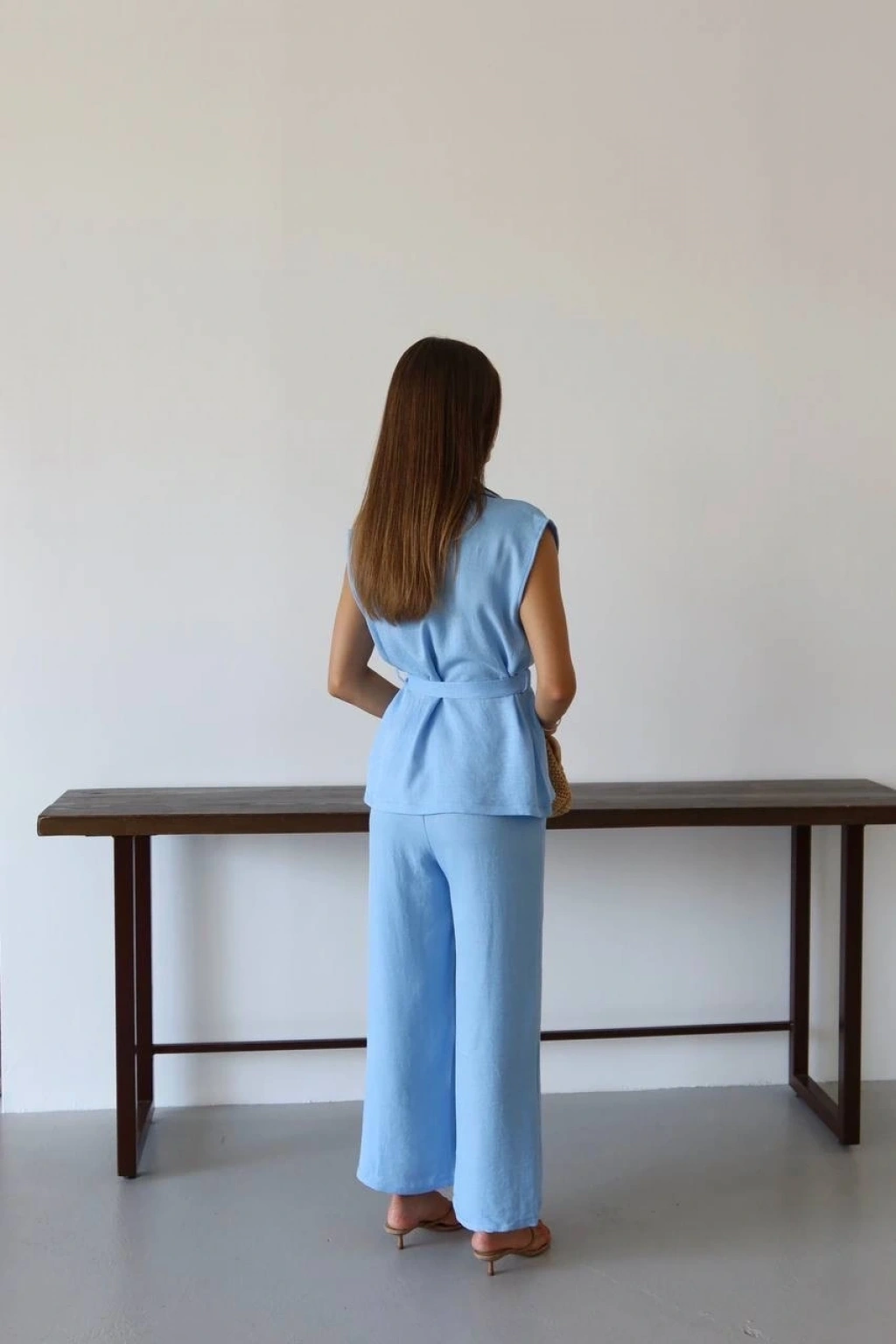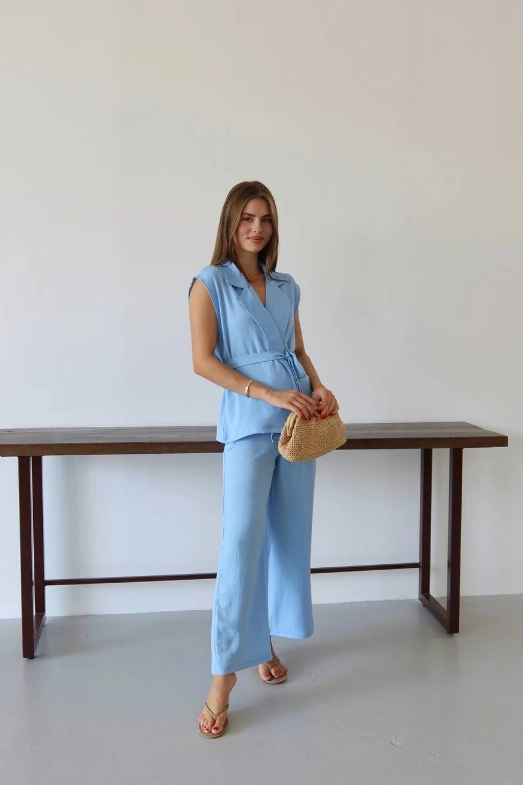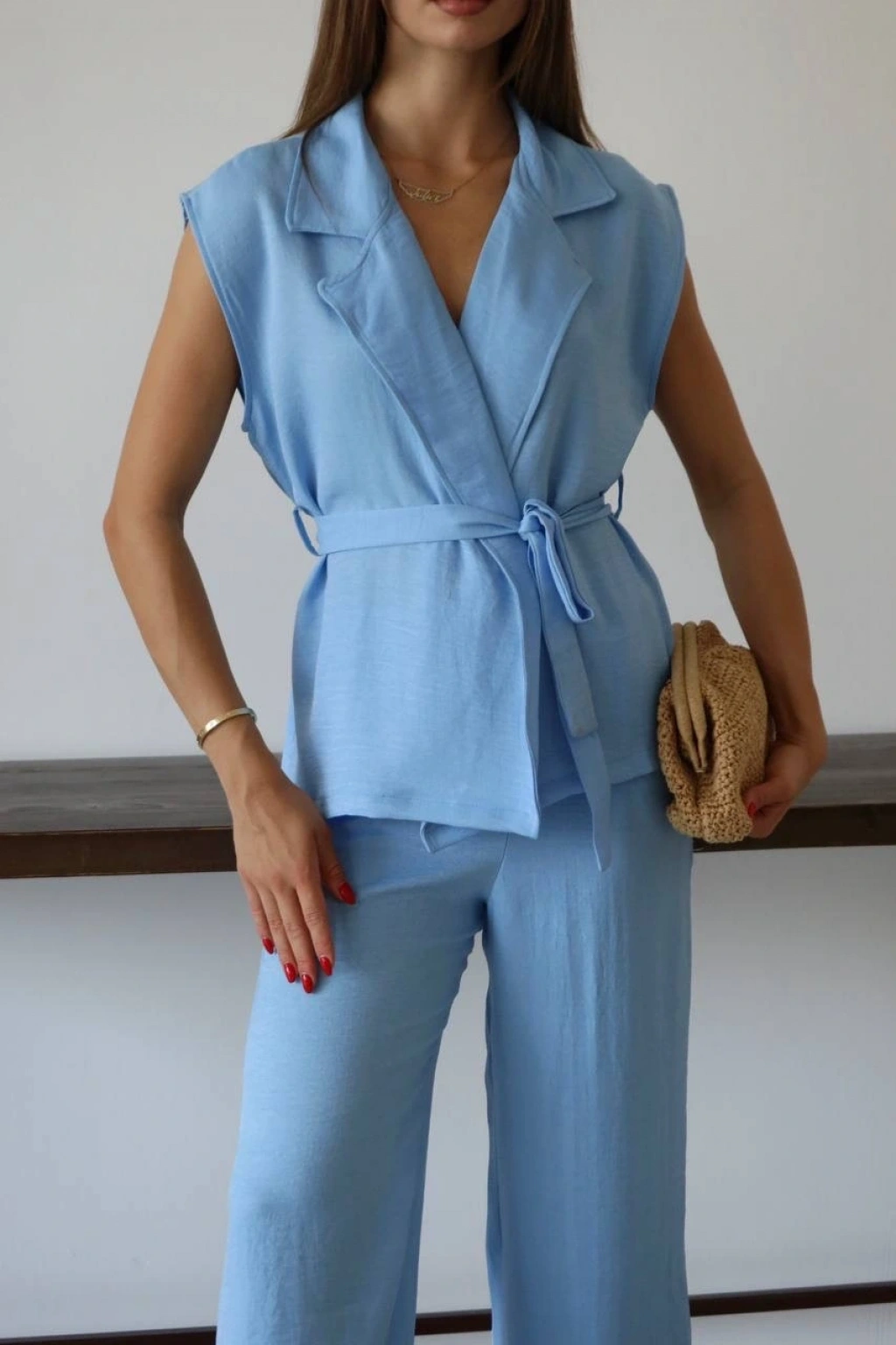 Keten yelek pantolon takım mavi pt--şık ve trend tasarımlarından biri olan keten yelek pantolon takım mavi PT, şıklığı ve rahatlığı bir arada sunuyor. Ürün Özellikleri: Keten kumaştan üretilmiştir. Takımın içerisinde mavi renk yelek ve pantolon bulunmaktadır. Yeleğin ön kısmında düğme detayı bulunmaktadır. Pantolonun bel kısmı lastiklidir ve rahat bir kullanım sunar. Şık ve modern tasarımı ile özel davetlerde ve günlük kullanımda tercih edebileceğiniz bir parçadır. kalitesi ve tarzı ile öne çıkan bir üründür. Şıklığı ve konforu bir arada arayan kadınların tercihi olan keten yelek pantolon takım mavi PT, gardırobunuzun vazgeçilmezi olmaya aday!