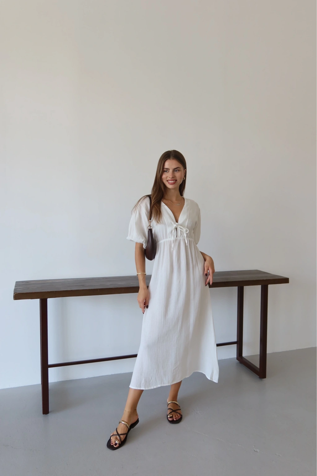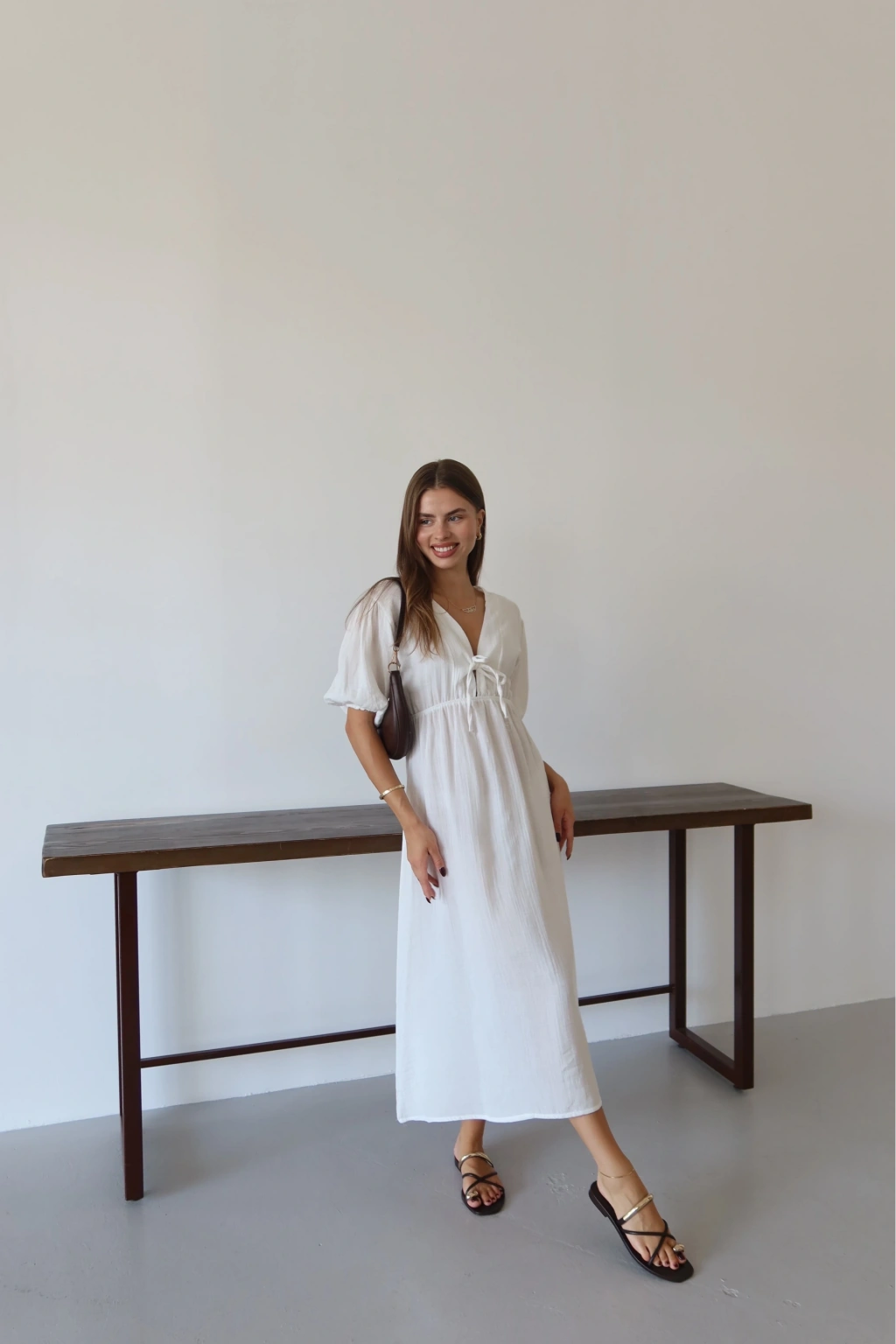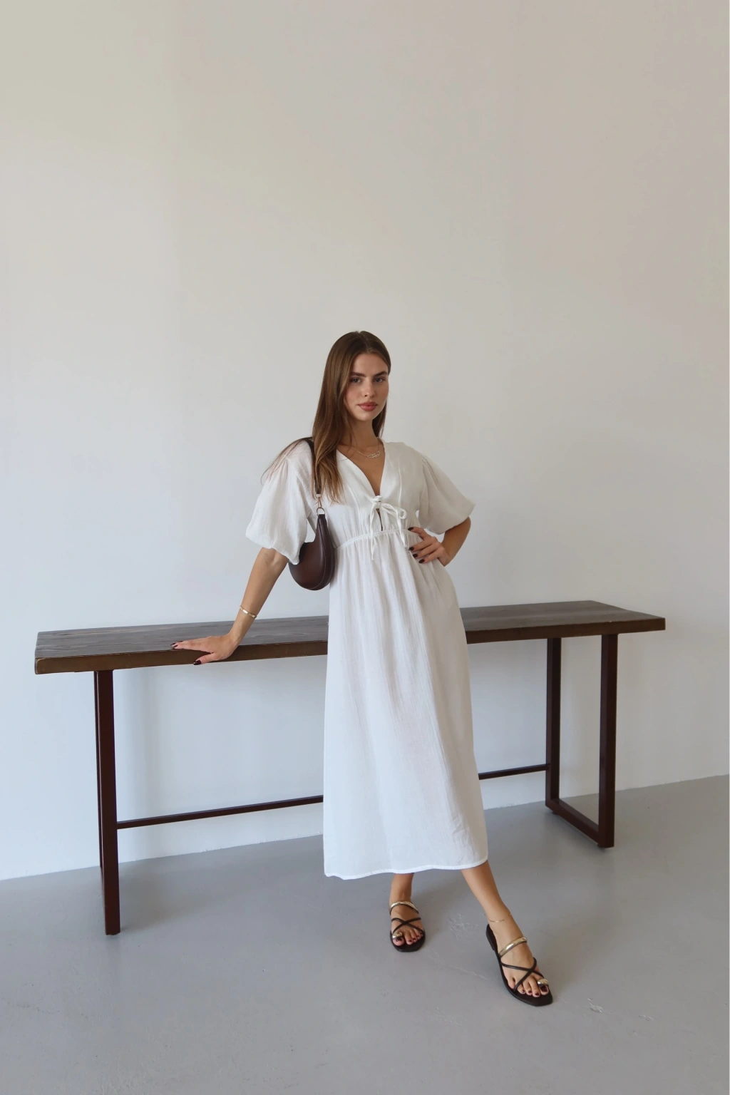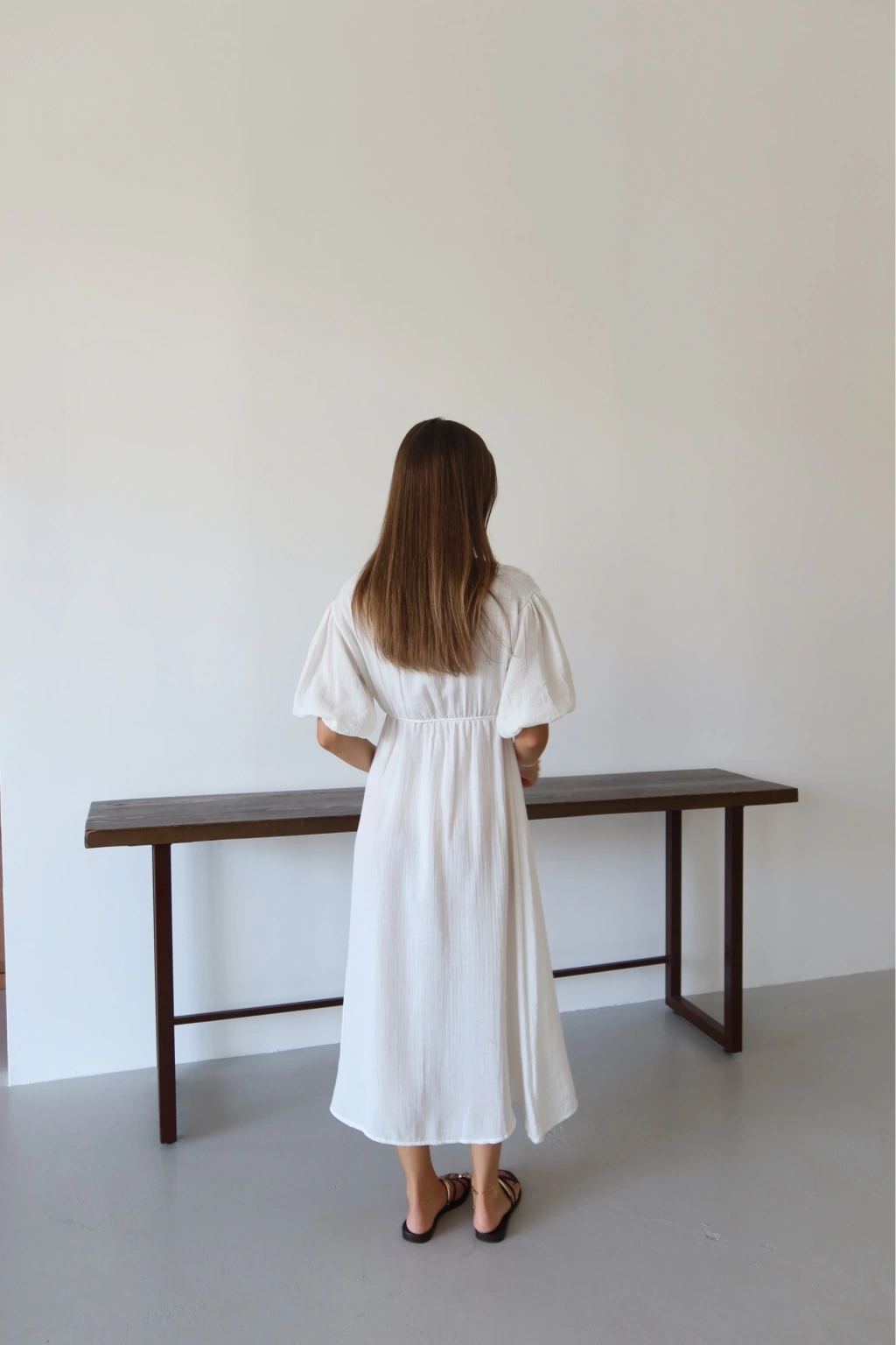 Kısa kollu müslin elbise beyaz pt--Ürün Adı: Müslin Kısa Kollu Elbise - Beyaz Kategori: Kadın Giyim > Elbise Özellikler: Nefes alabilen ve hafif müslin kumaştan üretilmiştir. Şık ve rahat kesimiyle günlük kullanıma uygun bir parçadır. Midi boy kesimindedir, diz üzeri bir uzunluğa sahiptir. Yuvarlak yakalı ve kısa kollu tasarımıyla yaz aylarında tercih edebileceğiniz bir parçadır. Bel kısmında yer alan ince kemer ile belinizi vurgular. Ürün beyaz renktedir, kombin yapma kolaylığı sağlar.