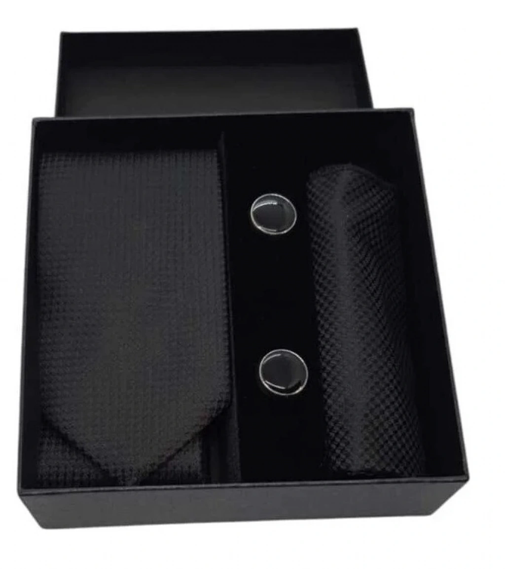 Krat Düğme Set Siyah Desenli Krat Mendil Kol Düğmesi Özel Set Erkeklere alabileceğiniz en güzel hediye. Hem ŞIK hem Kaliteli SET İÇERİĞİ :Krat Genişliği 7-cm - Boyu 150 cmKendi Kumaşından Kombin Mendil ve Kol Düğmesi olarak 3 parçadan oluşurÖzel Kutusu ile Gönderilmektedir.