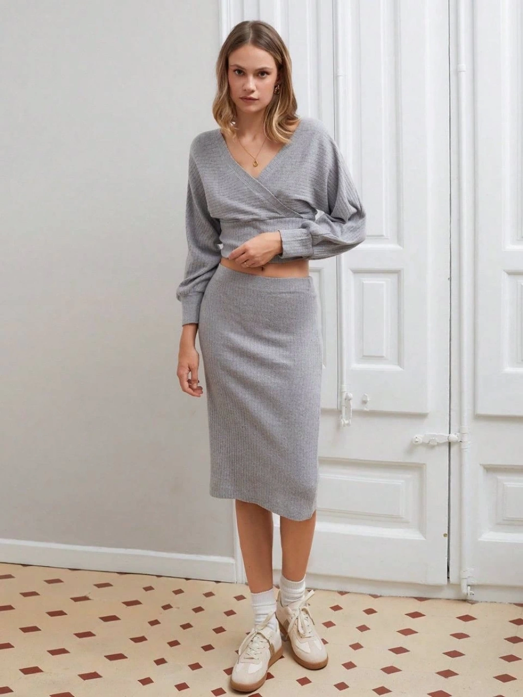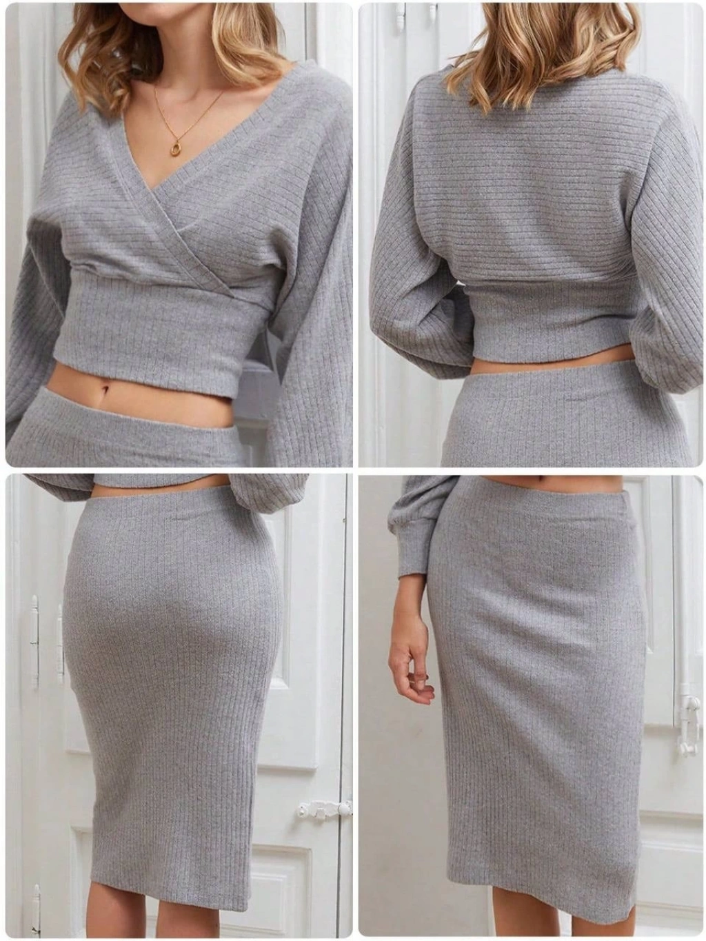 Kruvaze şardonlu etekli takım gri--Şıklığı ve rahatlığı bir arada sunan Kruvaze Şardonlu Etekli Takım Gri, gardırobunuzun vazgeçilmezi olmaya aday! İşte bu harika takımın özellikleri: Kruvaze detaylı ceketi ile şık bir görünüm sunar. Yüksek bel şardonlu eteği, feminen bir tarz yakalamanızı sağlar. Gri rengi, her kombinle kolaylıkla uyum sağlar. Rahat kesimi sayesinde gün boyu konforlu bir kullanım sunar. Özel günlerde ve günlük hayatta şıklık ve zarafet arayan kadınların tercihi. Kadın Giyim kategorisinde yer alan bu takım, özel günlerinizde ve iş hayatınızda stilinizi konuşturmanızı sağlar.