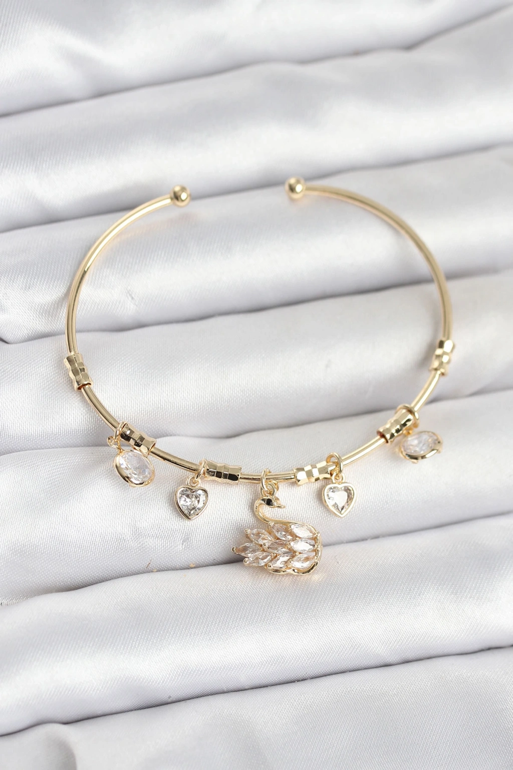 Kuğu Charmlı Gold Renk Kadın Bileklik