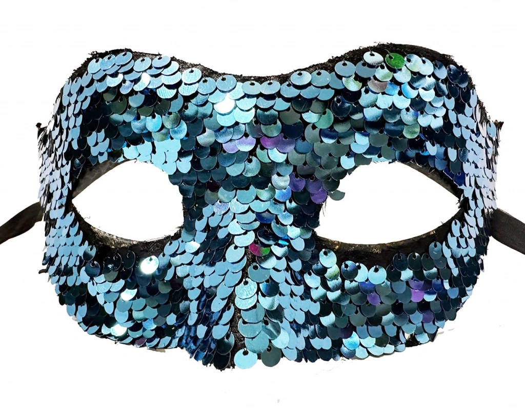 Mavi Renk Payetli Pullu Parti Maskesi B VenedikYetişkinler için uyumludurMaske üzeri pul payet işlemelidirİp aparatı sayesinde yüze göre uyum sağlarKaliteli malzemeden üretilmiştir