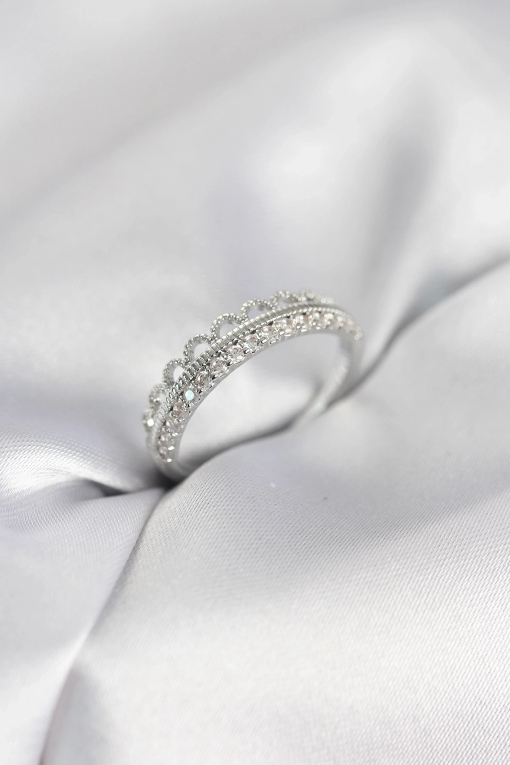 Motif Desenli Gümüş Renk Zirkon Taşlı Kadın Yüzük