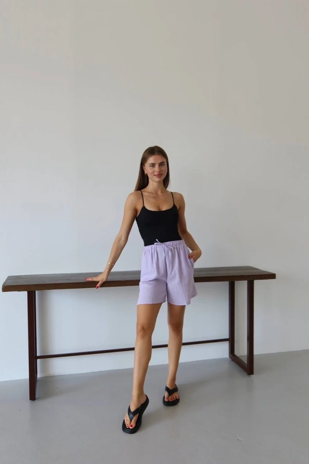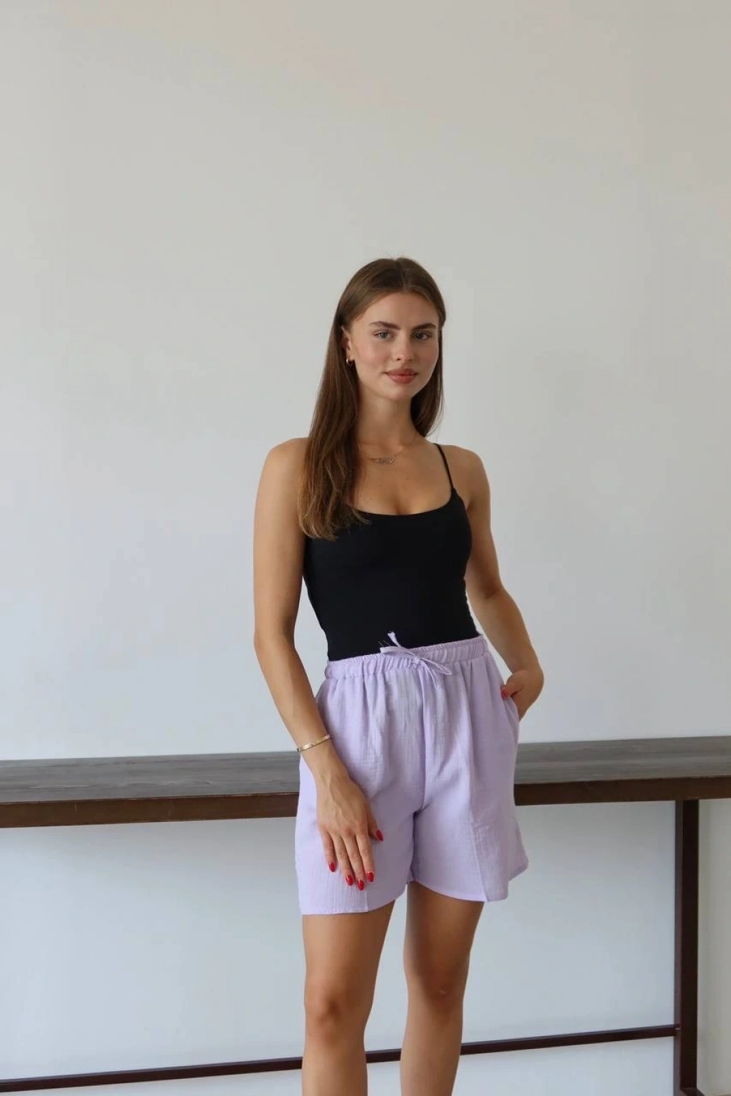 Müslin kumaş şort bağcıklı lila pt--Müslin Kumaş Şort Bağcıklı Lila PT, gardırobunuzun vazgeçilmez parçası olmaya aday! Rahatlığı ve şıklığı bir arada sunan bu şort ile şıklığı yakalayacaksınız. Müslin kumaştan üretilmiştir. İnce ve hafif yapısıyla yaz aylarında ideal bir seçenektir. Bağcıklı tasarımı sayesinde belinize uygun şekilde ayarlayabilirsiniz. Lila rengi ile kombinlerinize hareket katacak şık bir seçenektir. Günlük kullanıma uygun olup, her tarz kıyafetinizle rahatlıkla kombinlenebilir. Hem şıklığı hem de konforu bir arada arayan kadınlar için ideal bir tercihtir. Bu şık şort ile tarzınızı tamamlayın, kendinizi özgür hissedin!