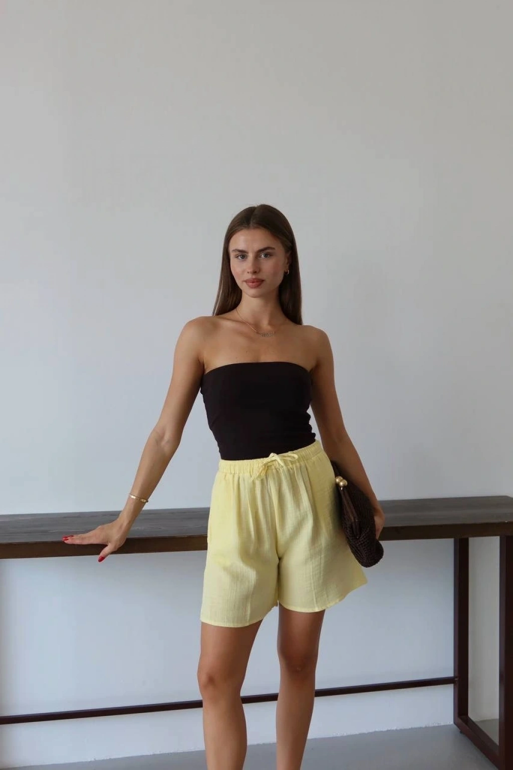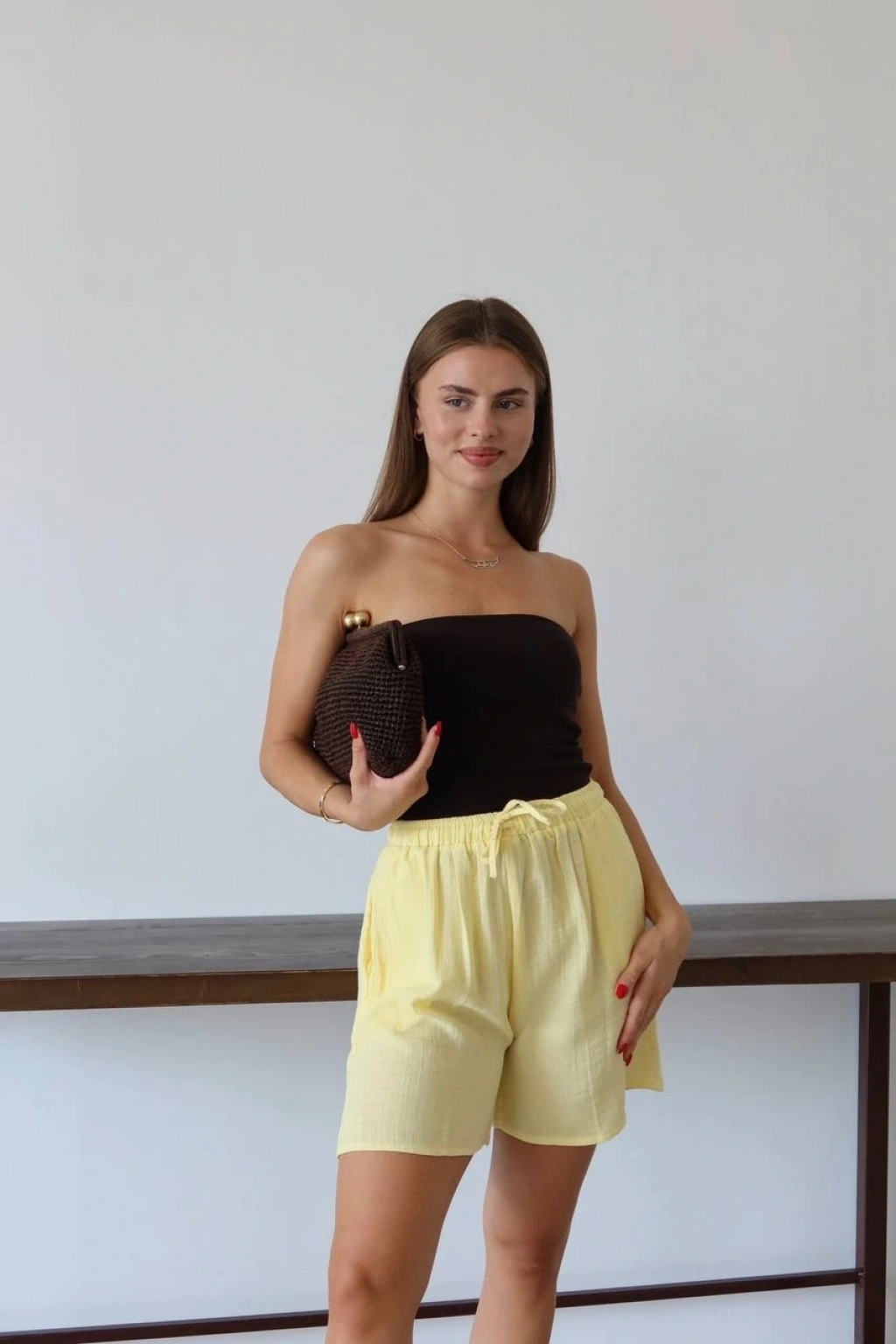 Müslin kumaş şort bağcıklı sarı pt--Müslin Kumaş Şort Bağcıklı Sarı PT hem şıklığı hem de rahatlığı bir arada sunuyor. Müslin kumaştan üretilmiş olan bu şort, yaz aylarında serin ve konforlu bir deneyim sunar. Ürün Özellikleri: Bağcıklı tasarımı ile bel kısmında ayarlanabilirlik sağlar. Sarı rengi, enerjik ve şık bir görünüm sunar. Müslin kumaşın hafif ve yumuşak dokusu, gün boyu rahatlık sağlar. Tamamlayıcı üst kıyafetler ile kolayca kombinlenebilir. Yüksek kaliteli malzeme ve işçilik ile uzun ömürlü kullanım ianı sunar. Bu şort, günlük kullanımdan plaj tatillerine kadar geniş bir kullanım alanı sunar. Şıklığı ön planda tutarken konforundan ödün vermeyenler için ideal bir seçenektir.