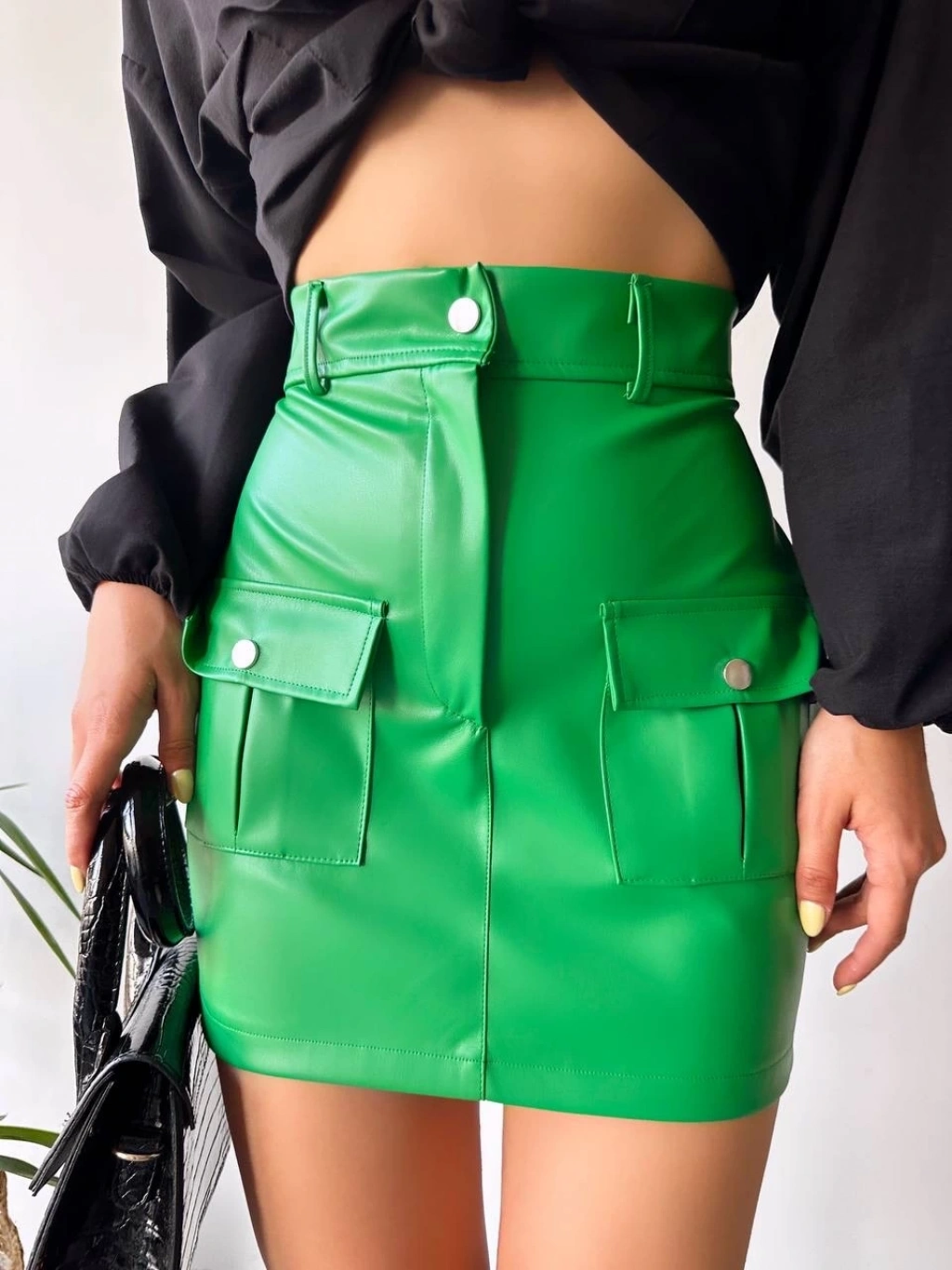 Önden iki cepli deri etek yeşil h240040--Önden iki cepli deri etek, gardırobunuzun vazgeçilmezi olmaya aday! Marka: H240040 Renk: Yeşil Materyal: Yüksek kaliteli deri Model: A kesim Bel kısmında lastik detayı bulunmaktadır Ön kısmında iki kullanışlı cep mevcuttur Günlük şıklığınızı tamamlayacak olan bu eteği rahatlıkla kombinleyebilirsiniz Toplam Uzunluk: 70 cm Tek parça halinde önden düğmeli Yı Talimatı: Sadece kuru temizleme yapılmalıdır